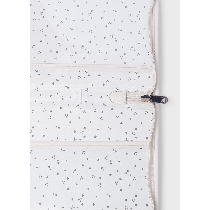 No solo es funcional, sino que también es un accesorio elegante que complementará el estilo de tu bebé. El estampado en tonos suaves y delicados le da un toque moderno y sofisticado al portadocumentos, convirtiéndolo en un complemento imprescindible para las salidas con tu pequeña.