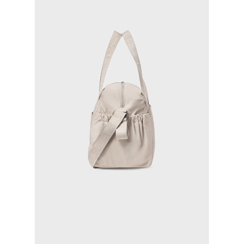 Este bolso grande beige de Mayoral es práctico y funcional, ya que te ofrece la posibilidad de mantener todo ordenado y a mano mientras sales a pasear o viajas con tu pequeño. Su diseño moderno y elegante lo convierte en un accesorio imprescindible para mamás con estilo.