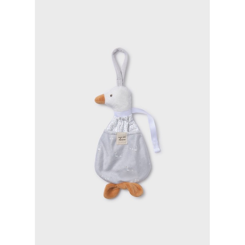 El Peluche Portachupete Plata de la reconocida marca Mayoral es el accesorio perfecto para tu bebé. Con un diseño encantador y funcional, este peluche no solo mantendrá el chupete de tu pequeño seguro, sino que también le brindará un compañero suave y reconfortante.