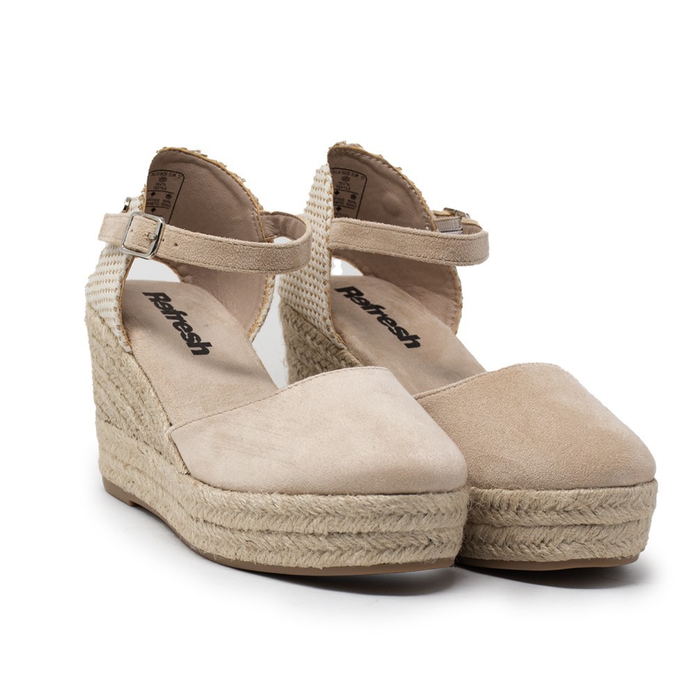 Las alpargatas Valenciana Piso Yute Antelina Beig de la marca Refresh son el calzado perfecto para lucir un look fresco y veraniego. Confeccionadas con materiales de alta calidad, estas alpargatas combinan a la perfección comodidad y estilo.