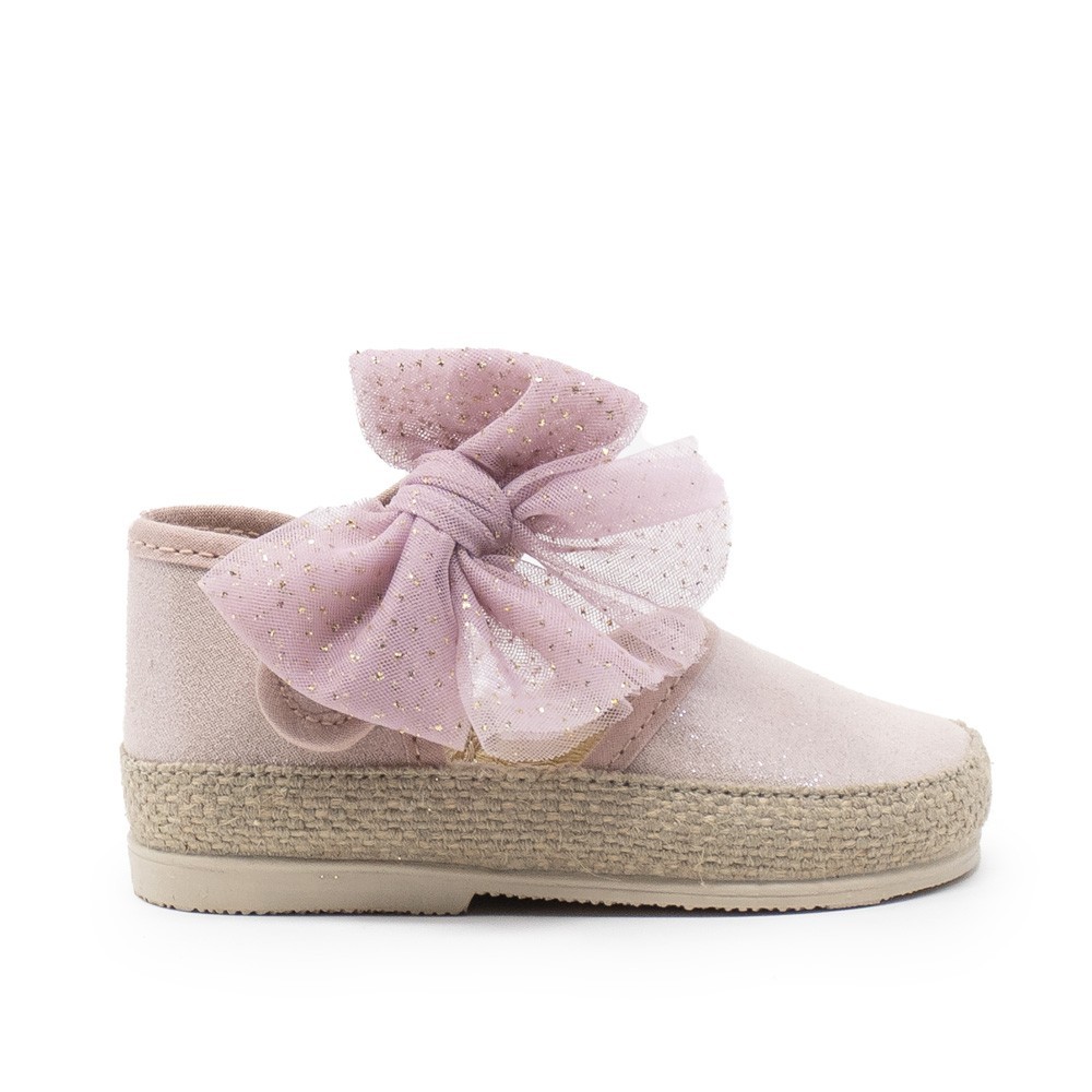 Ideal para eventos especiales como bodas, comuniones o simplemente para dar un toque elegante a los looks diarios, las Valencianas Lazo Tul Purpurina Nude son una elección acertada para las niñas que buscan estilo y comodidad en un mismo zapato.