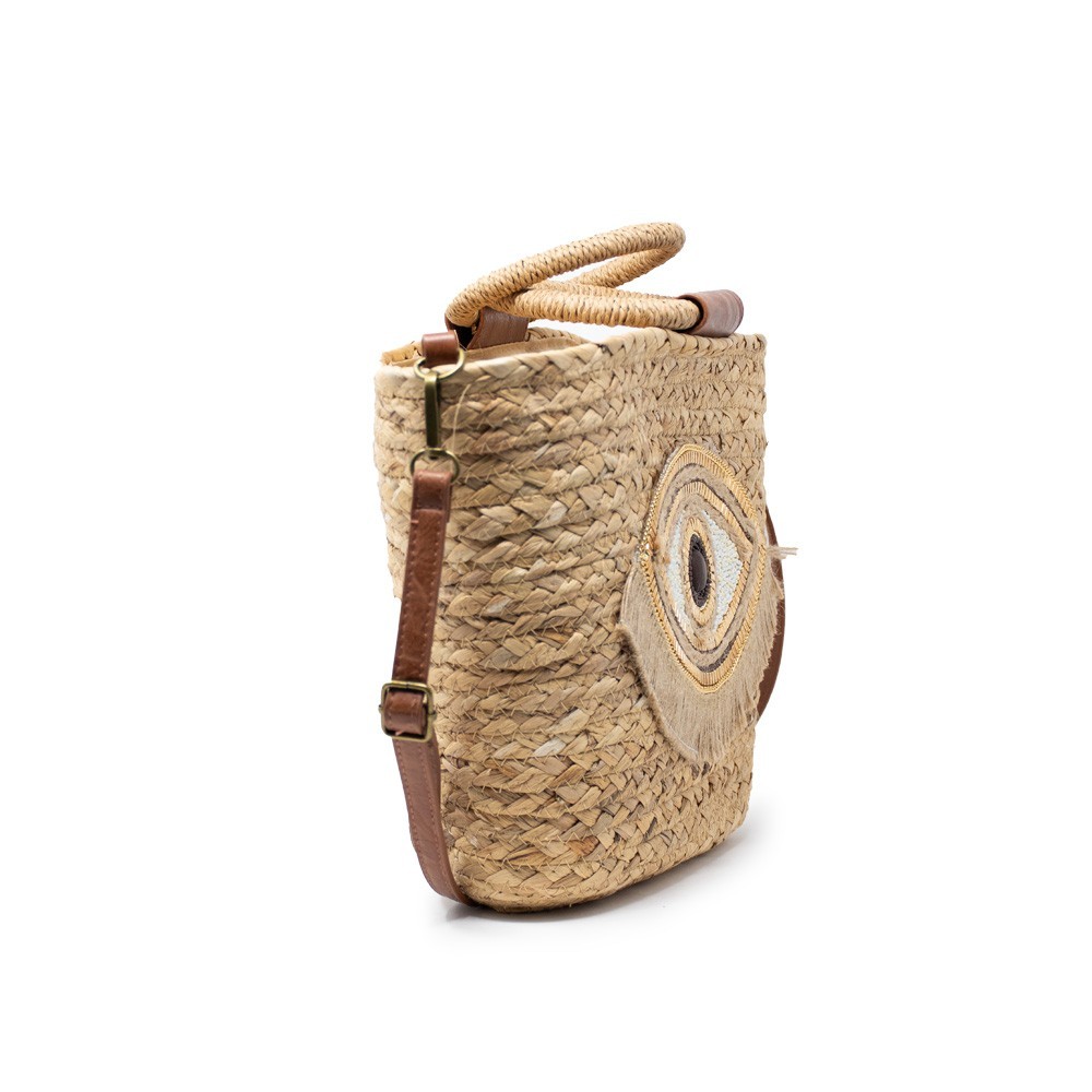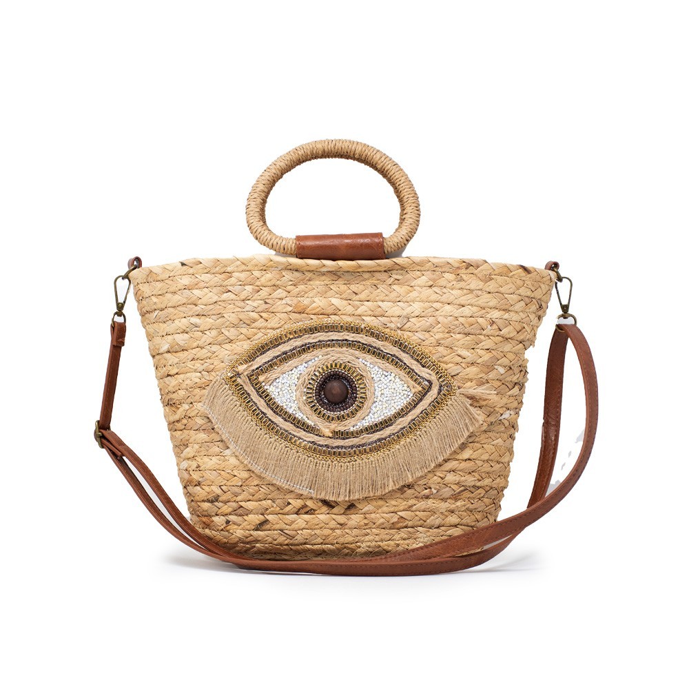 El diseño único de este capazo lo convierte en una pieza imprescindible para cualquier fashionista que quiera destacar en la playa, en un paseo por la ciudad o en una tarde de compras. El detalle del ojo dorado le da un toque original y llamativo que no pasará desapercibido.