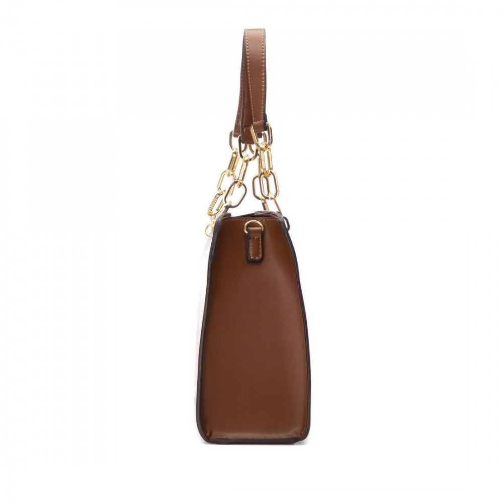 Este bolso está fabricado con materiales de alta calidad que garantizan su durabilidad y resistencia. Su color camel le da un toque elegante y versátil que combina fácilmente con cualquier outfit. Además, cuenta con múltiples compartimentos para organizar tus cosas de manera eficiente.