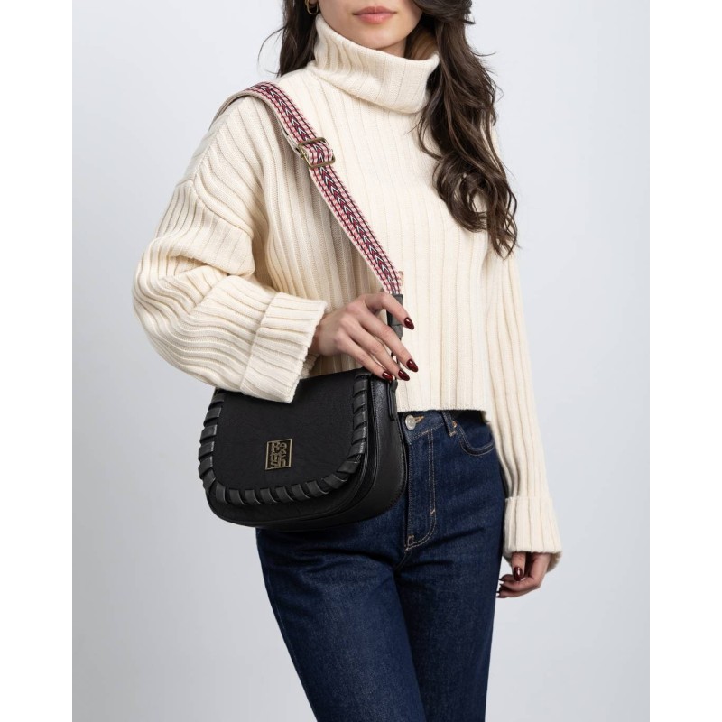 Con un tamaño compacto pero espacioso, esta bandolera cuenta con varios compartimentos que te permitirán organizar tus objetos personales de manera ordenada. Su correa ajustable te brinda la posibilidad de llevarla cruzada sobre el cuerpo o colgada al hombro, adaptándose a tus preferencias y necesidades.