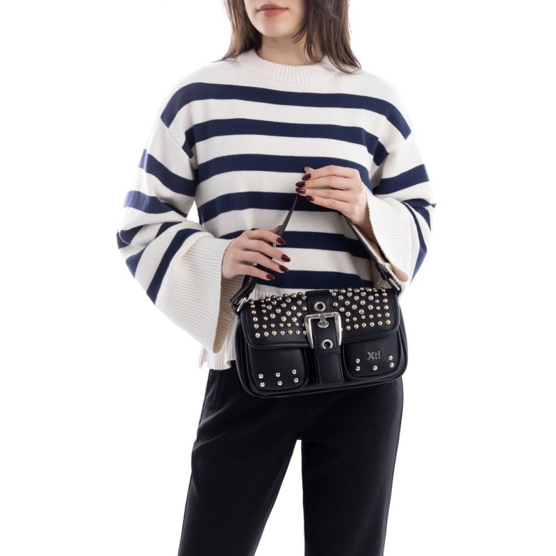Atrévete a darle un toque único a tu look con la bandolera remaches negro de XTI. ¡Hazte con ella ahora!
