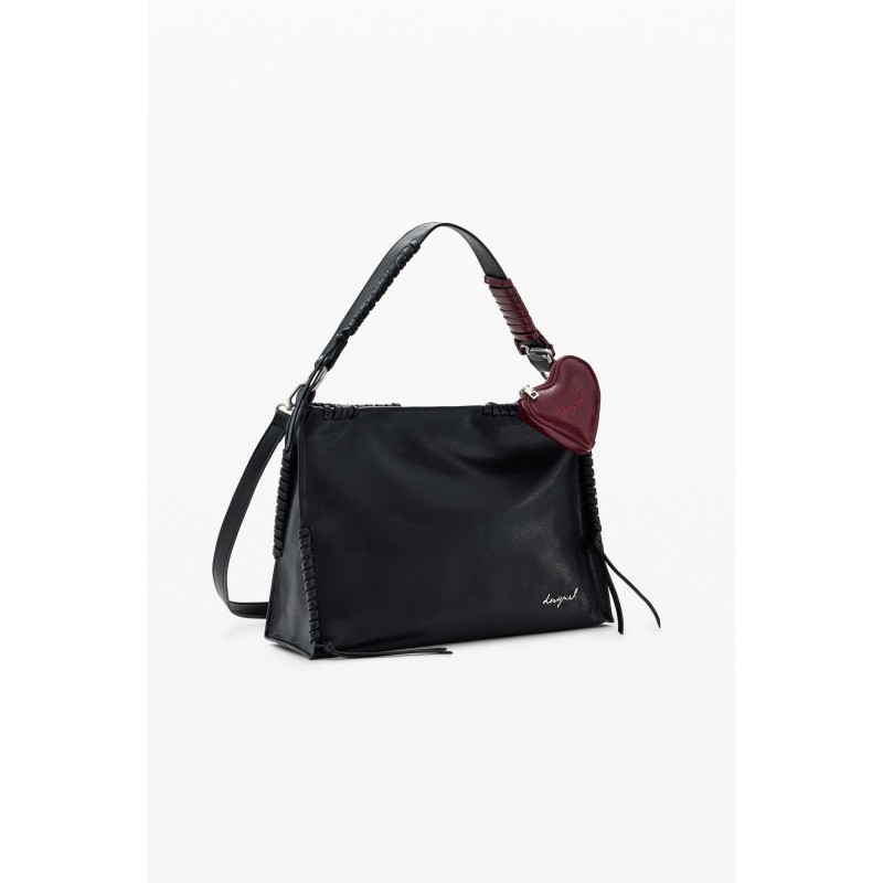 El bolso está fabricado en materiales de alta calidad que garantizan su durabilidad y resistencia. Su color negro le da un toque elegante y versátil que combina fácilmente con cualquier prenda. Además, cuenta con detalles en colores vibrantes característicos de la marca Desigual, que le dan un toque único y original.