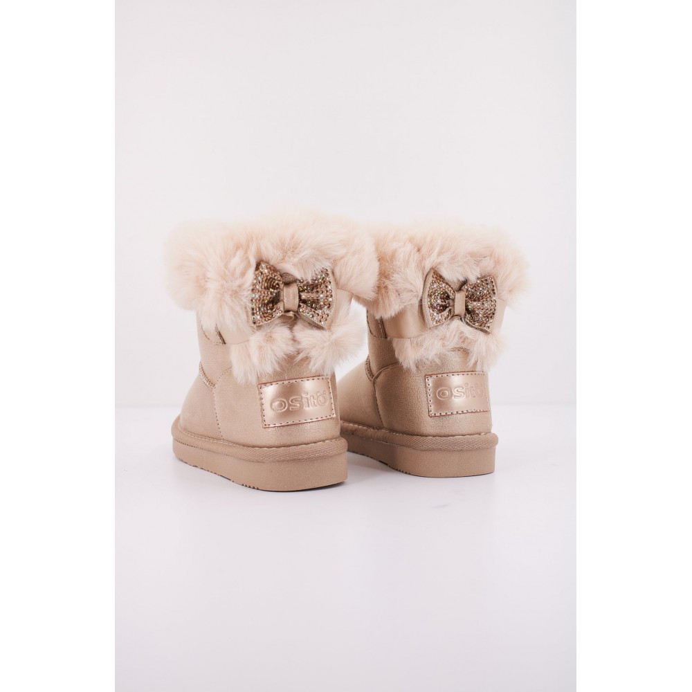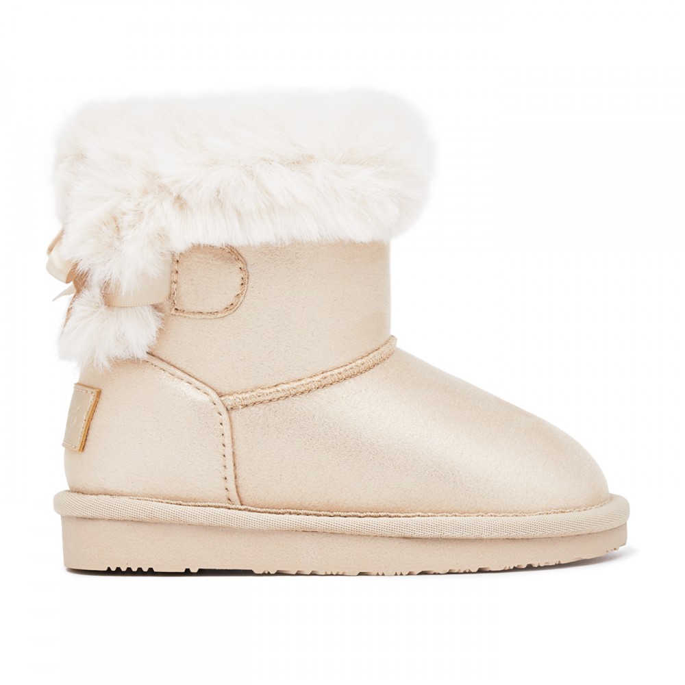 Las botas australianas son un calzado cómodo y versátil que se ha convertido en un básico en el armario de cualquier niña. La marca OSITO nos trae estas preciosas botas australianas con cuello de pelo en color dorado, perfectas para añadir un toque de estilo a cualquier conjunto.