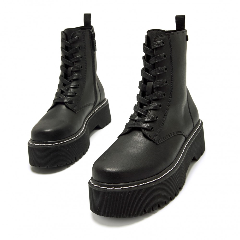 Las botas militares Mustang de doble piso en color negro son el complemento perfecto para un look urbano y moderno. Fabricadas con materiales de alta calidad, estas botas ofrecen comodidad y estilo a partes iguales.