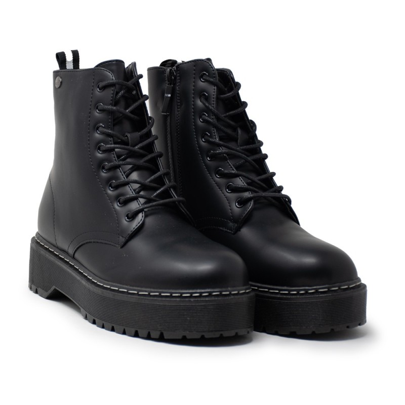 Las botas militares son un clásico atemporal que nunca pasan de moda. Estas botas MILITAR PISO GRUESO MATE NEGRO de la marca ISTERIA son el complemento perfecto para cualquier outfit con un toque rebelde y urbano.
