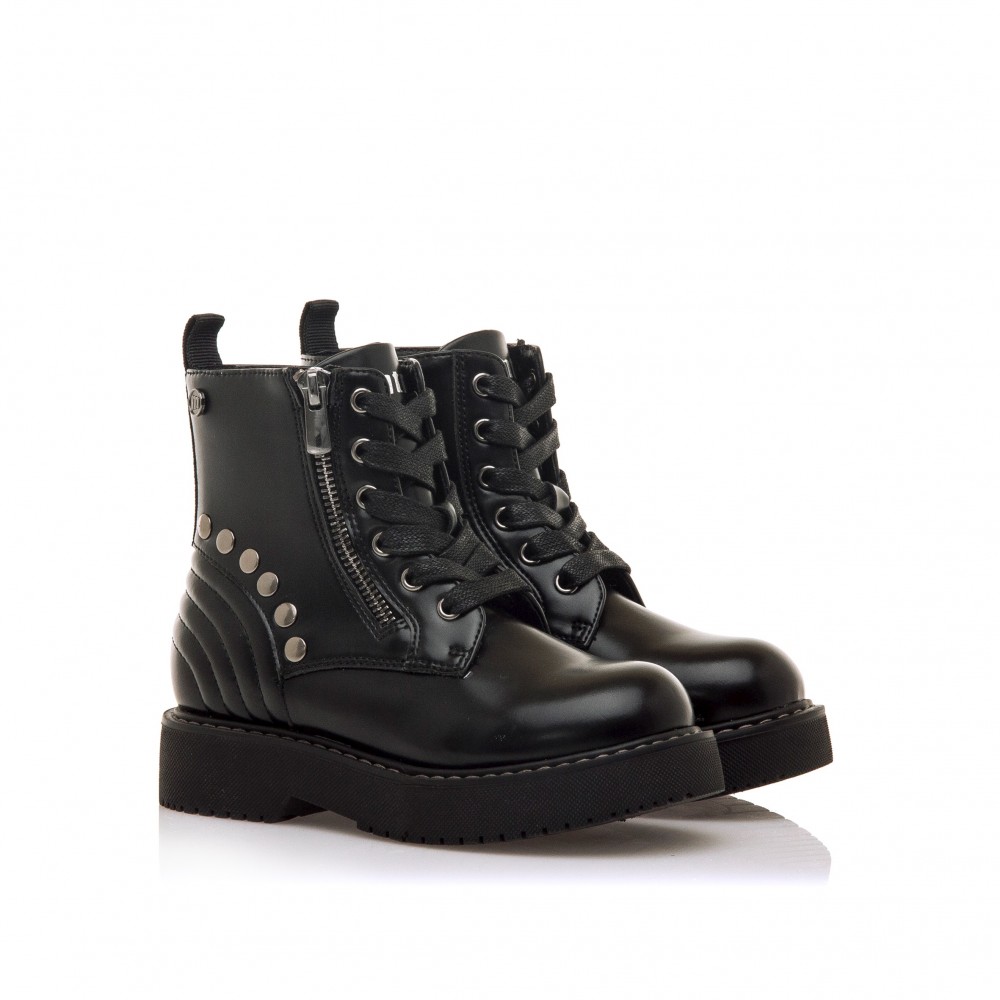 El color negro es versátil y fácil de combinar con diferentes prendas, permitiendo crear looks variados tanto para ocasiones casuales como formales. Las botas militares Mustang son una opción ideal para las niñas que buscan un calzado cómodo, resistente y con estilo.