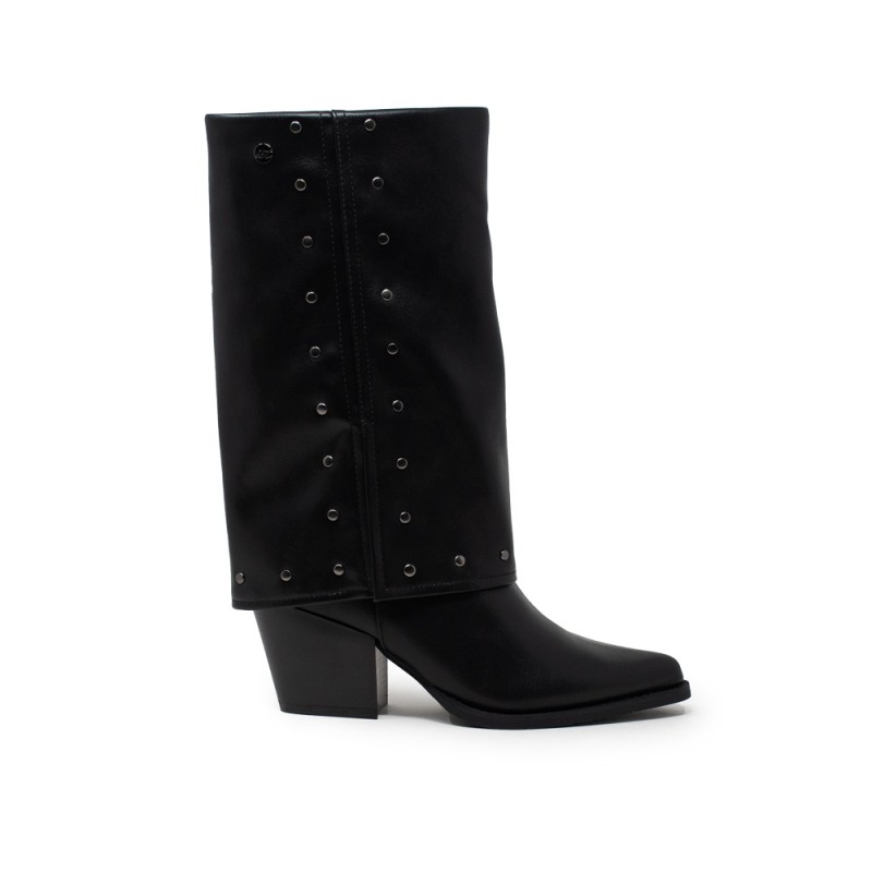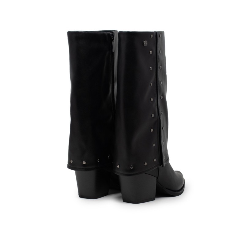 Las botas de vestir para mujer son un elemento esencial en cualquier guardarropa elegante y moderno. Con las Botas Solapa Tachas Negro de la marca ISTERIA, podrás lucir un estilo sofisticado y a la moda en cualquier ocasión.