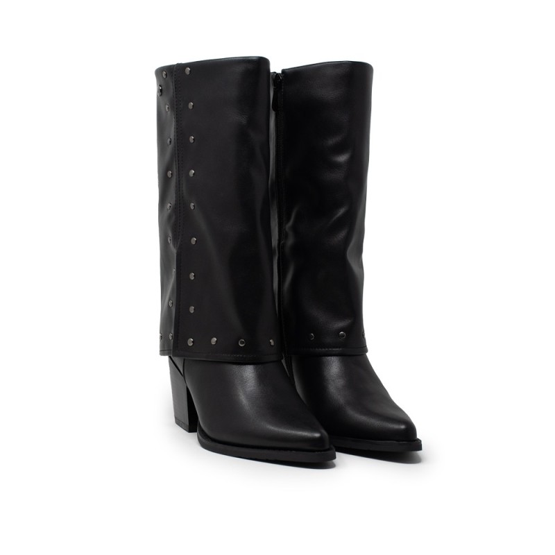Destaca tu estilo con estas elegantes botas de vestir que combinan a la perfección moda y funcionalidad. Atrévete a lucir sofisticada y chic con las Botas Solapa Tachas Negro de ISTERIA.