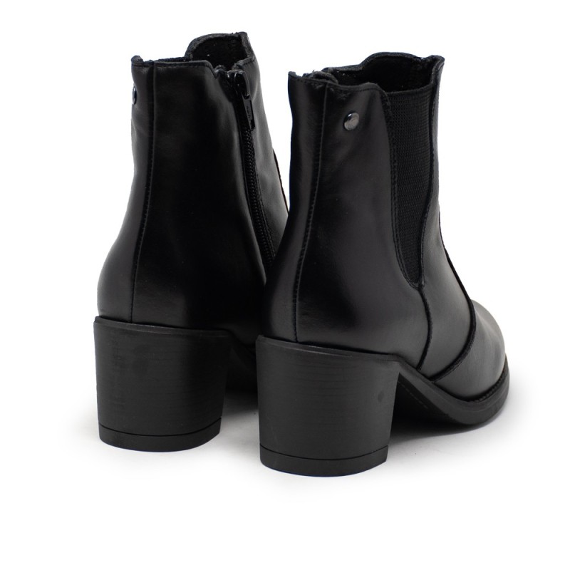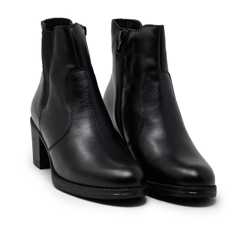 Los botines elásticos laterales de napa negra son ideales para combinar con jeans, faldas o vestidos, aportando un toque urbano y sofisticado a tu look diario. Su versatilidad los convierte en un básico imprescindible en cualquier armario femenino.