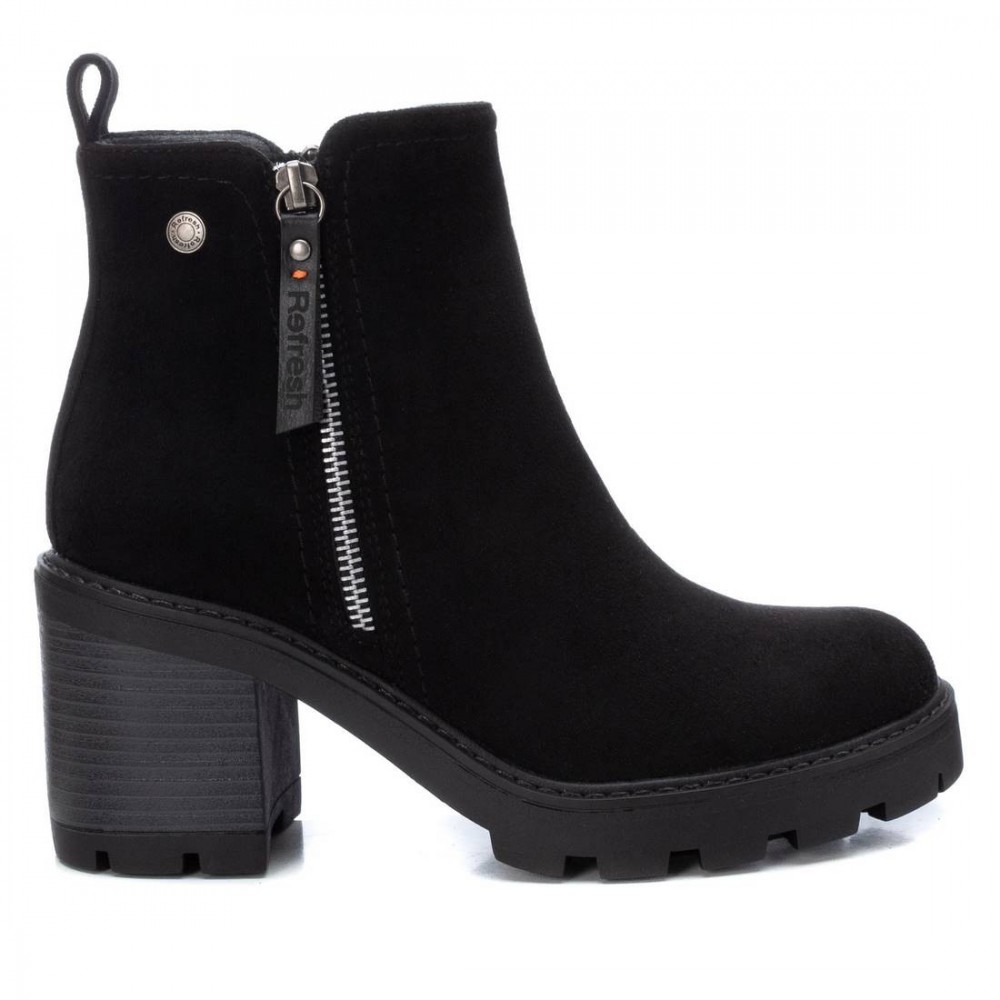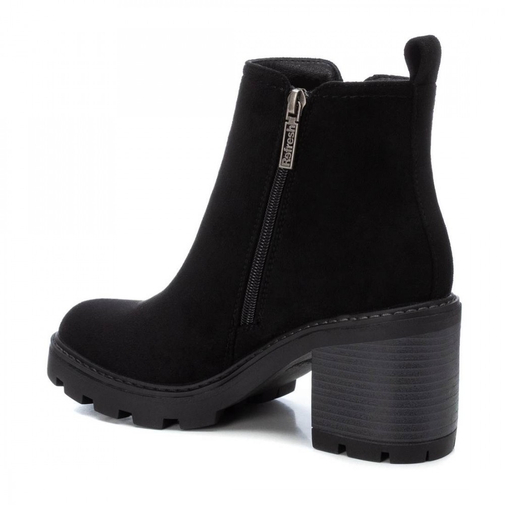 Este elegante botín con tacón y cremallera en color negro de la marca Refresh es el complemento perfecto para cualquier look casual de mujer. Su diseño moderno y versátil lo convierte en un imprescindible en tu armario.