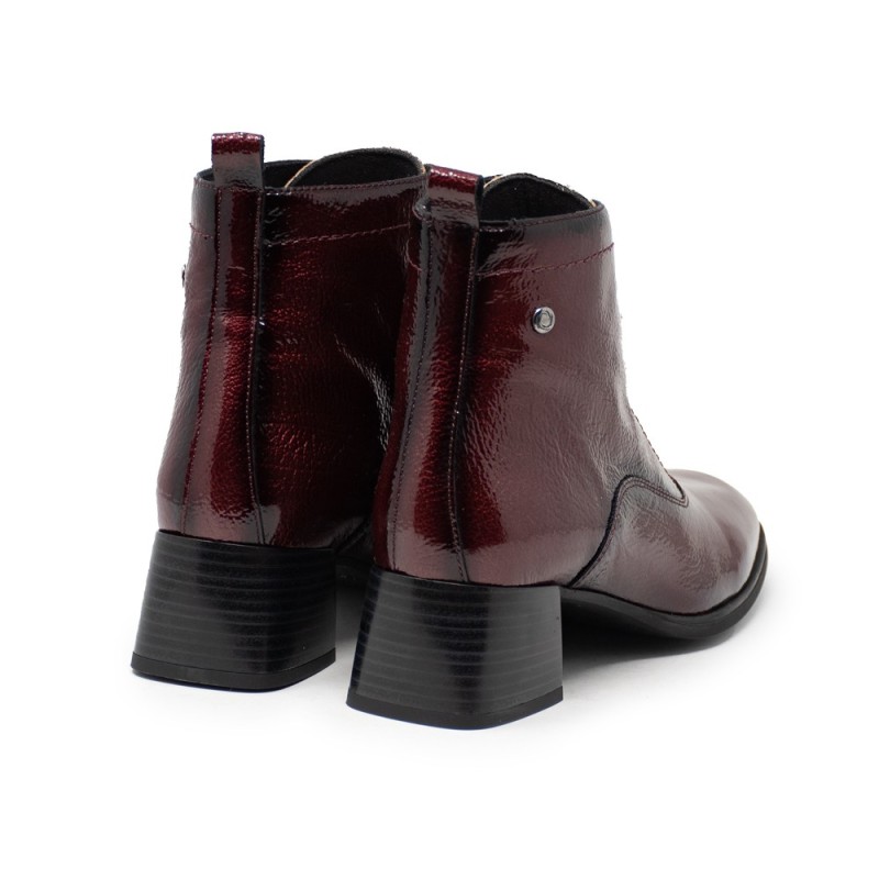 Confeccionado con materiales resistentes y de alta calidad, este botín es una excelente opción para complementar tu estilo. Su color burdeos es versátil y fácil de combinar con diferentes outfits, desde jeans hasta vestidos.