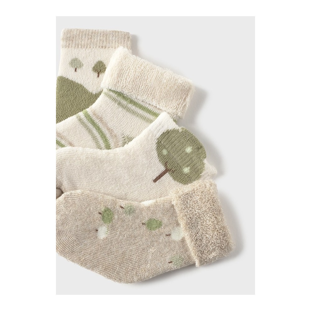 Los calcetines son una prenda esencial en el armario de cualquier niño, y este set de 4 calcetines en color salvia de la marca Mayoral es la opción perfecta para mantener los pies de tu pequeño cómodos y protegidos.