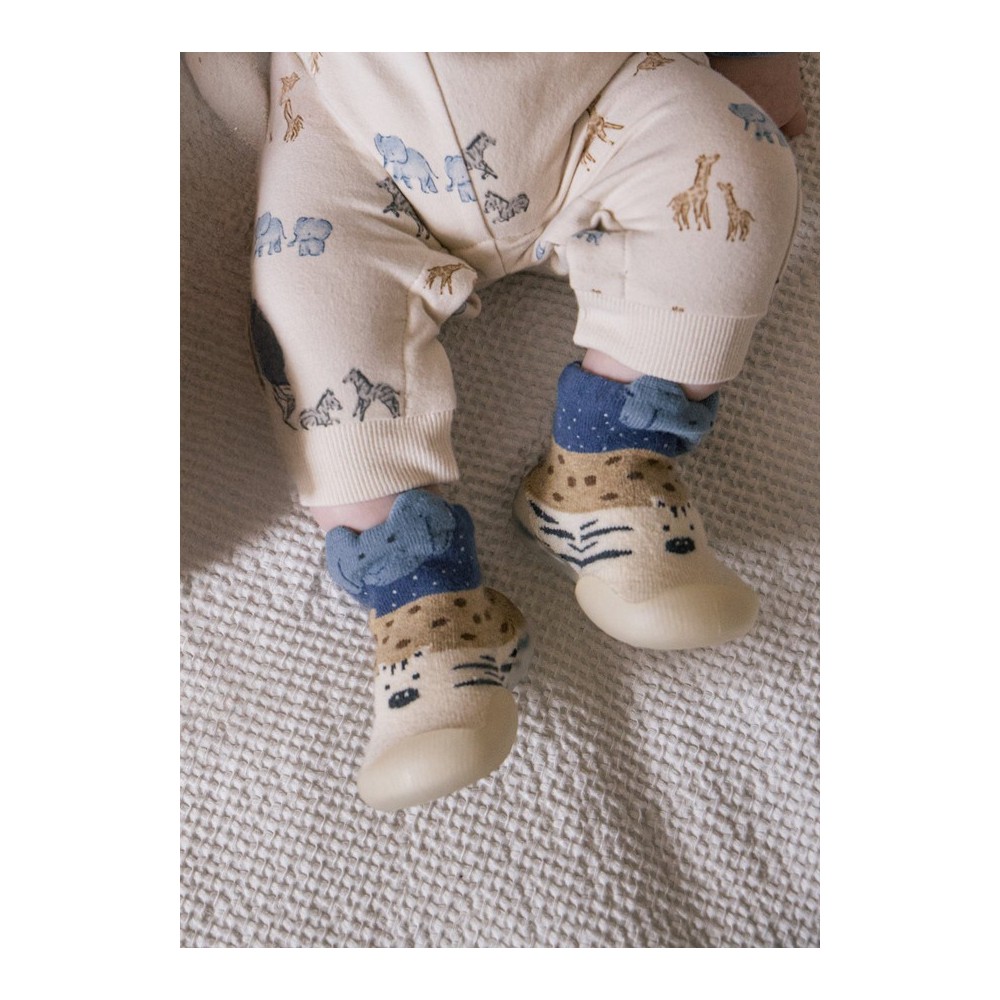 Estos calcetines están fabricados con materiales de alta calidad que garantizan su durabilidad y resistencia al uso diario. La suela acolchada proporciona un extra de comodidad y protección, ideal para que tu hijo pueda jugar y correr sin preocupaciones.