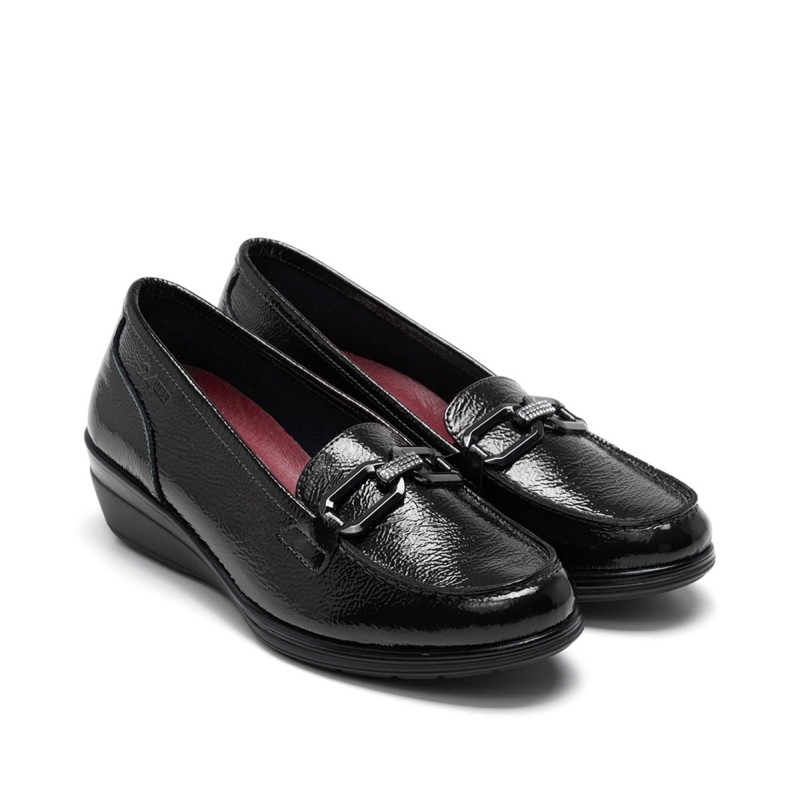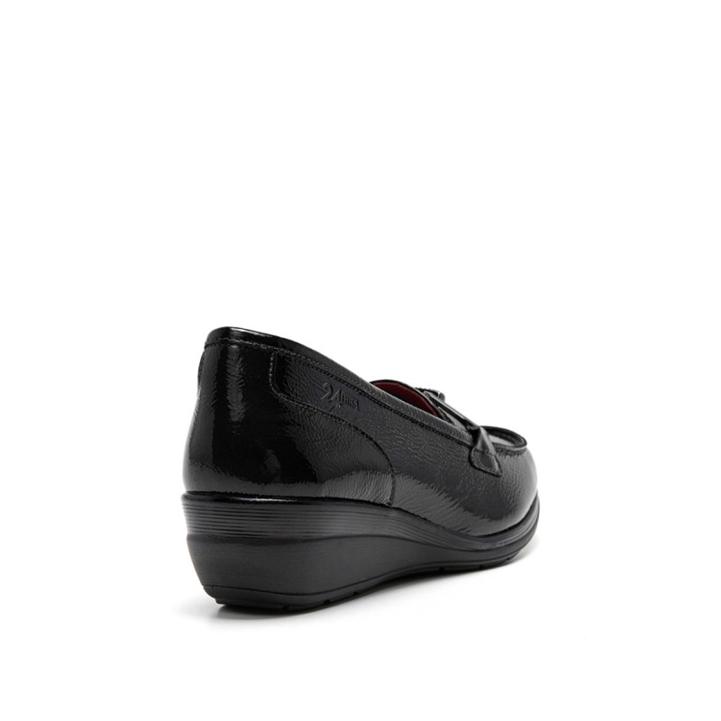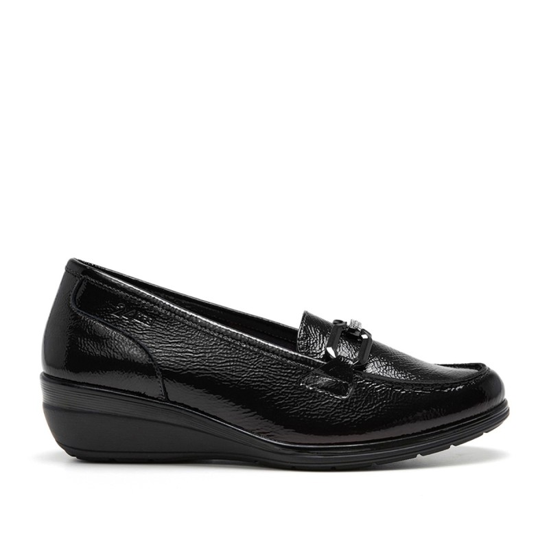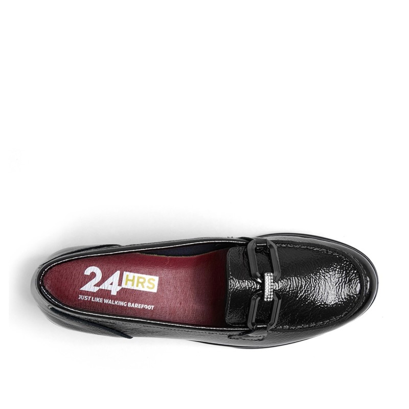 Los mocasines son un calzado clásico que nunca pasa de moda, y este modelo de la marca 24 HORAS combina estilo y comodidad a la perfección. El Mocasín Estribo con Brillantes en color negro es el complemento ideal para cualquier look elegante y sofisticado.