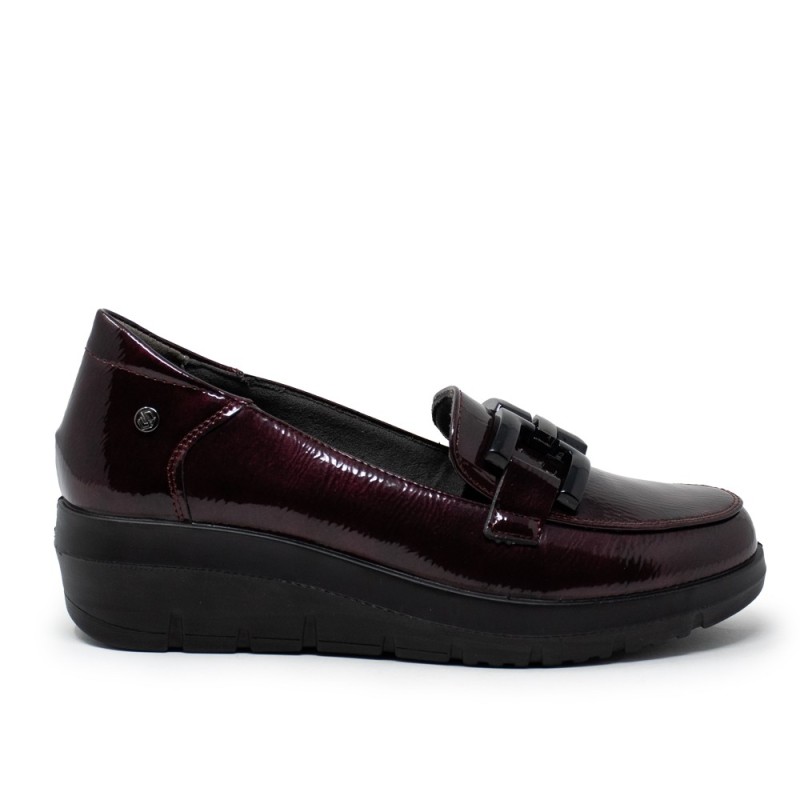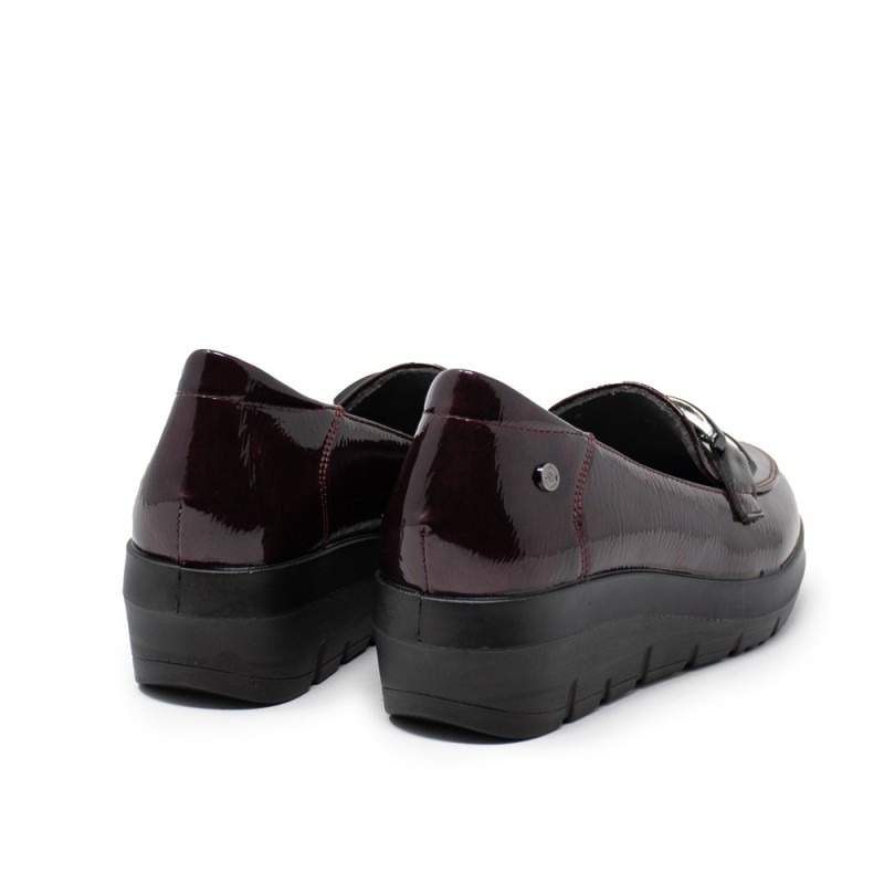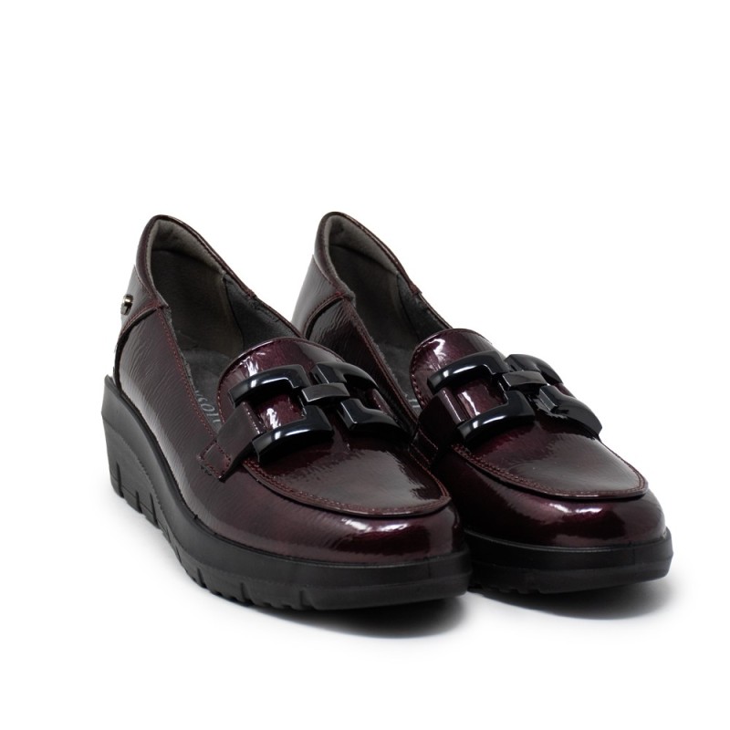 Los mocasines son un calzado clásico que nunca pasa de moda, y este modelo de charol en color burdeos con adorno metálico es perfecto para añadir un toque elegante a tus looks. Fabricados por la reconocida marca MY SOFT, estos mocasines son sinónimo de calidad y estilo.
