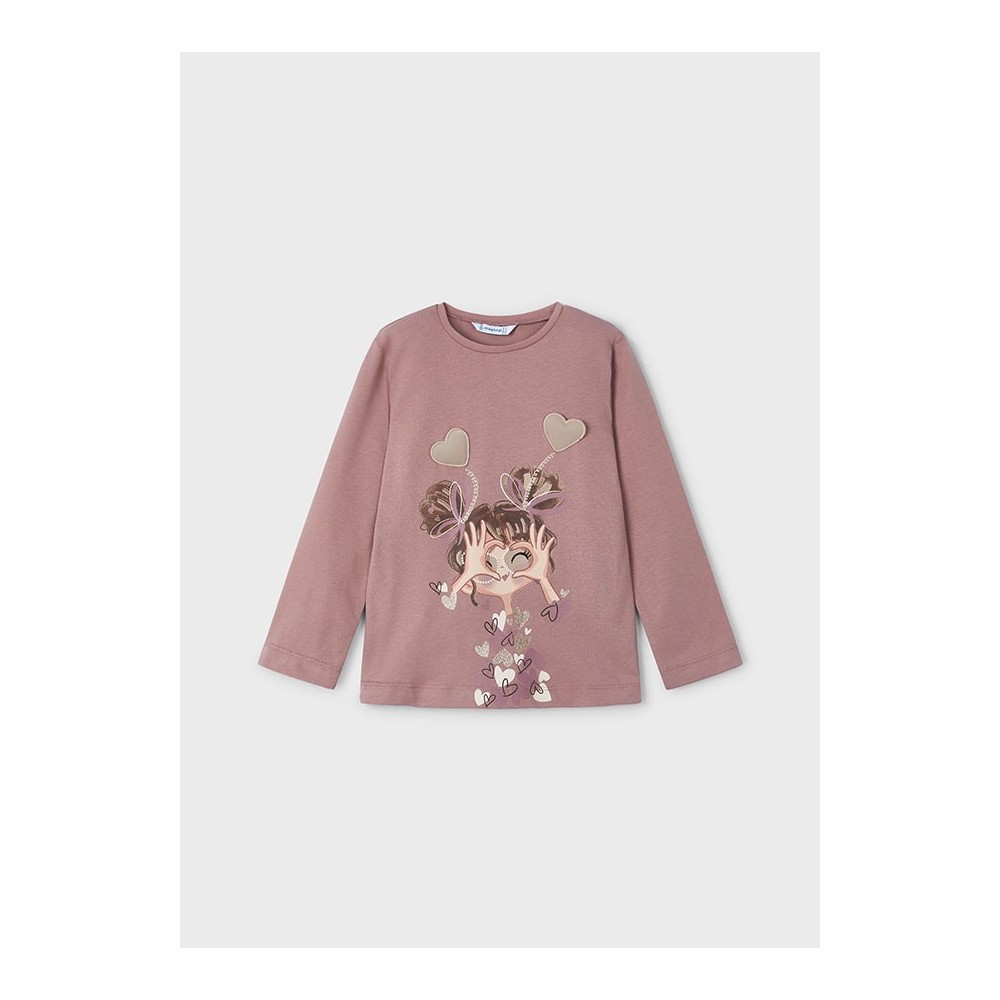 Esta encantadora camiseta de manga larga en color rosado es perfecta para las niñas que buscan comodidad y estilo. Fabricada por la reconocida marca Mayoral, esta prenda combina calidad y diseño en una sola pieza.