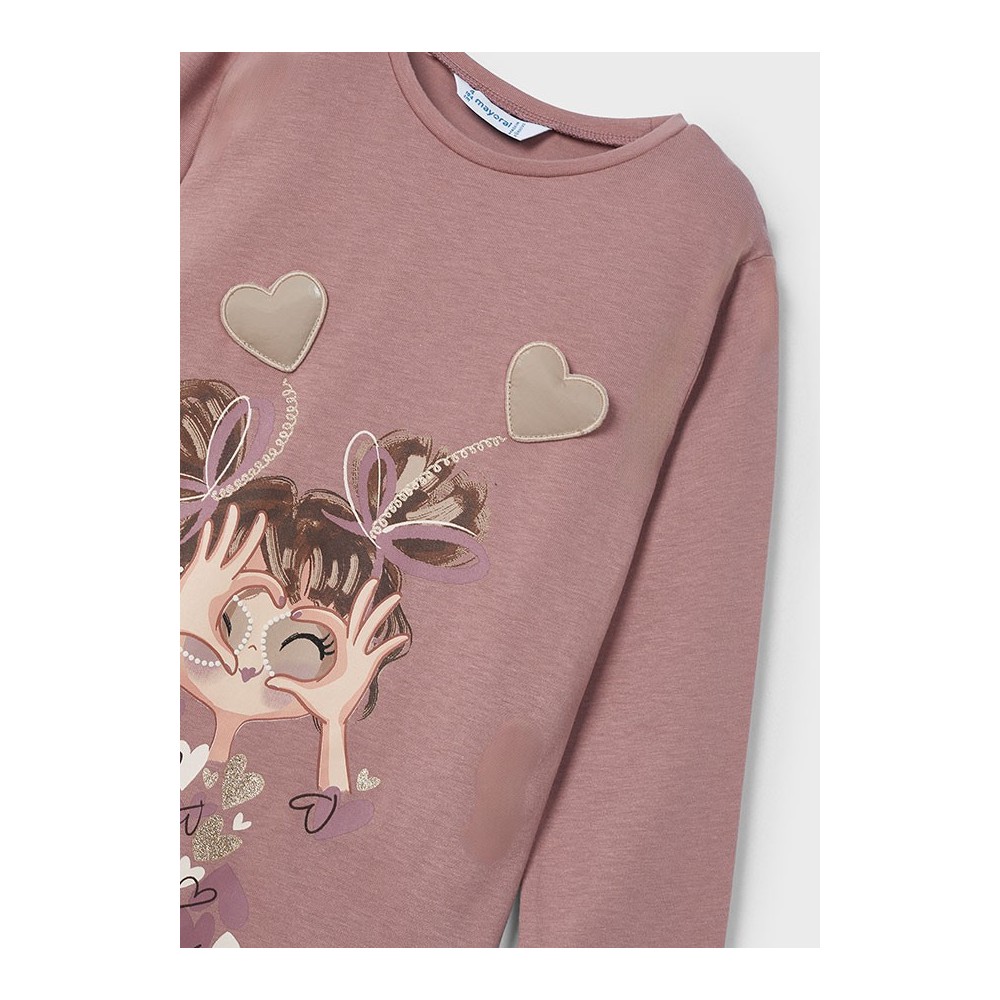 No pierdas la oportunidad de añadir esta hermosa camiseta de manga larga en color rosado a la colección de moda infantil de tu hija. ¡Hazla sentir especial con esta prenda única y exclusiva de Mayoral!