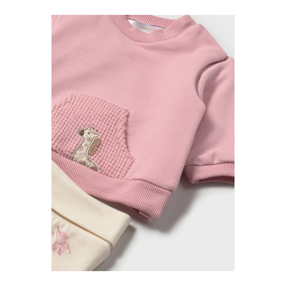 Este adorable conjunto de polaina y sudadera en color orquídea es perfecto para mantener a tu pequeña cómoda y elegante. La marca MAYORAL es conocida por su calidad y diseño, y este conjunto no es una excepción.