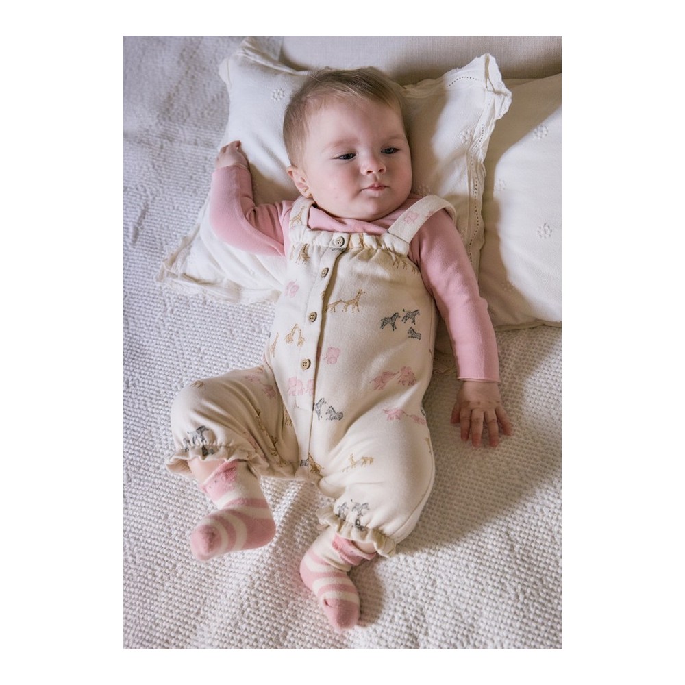 No dudes en añadir este encantador conjunto a la colección de moda infantil de tu hija. Con el Conjunto Peto Estampado Orquídea de Mayoral, lucirá elegante y cómoda en cualquier ocasión.