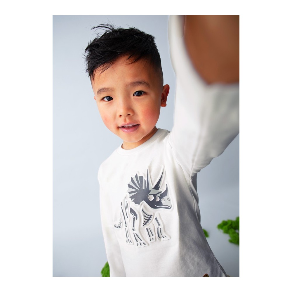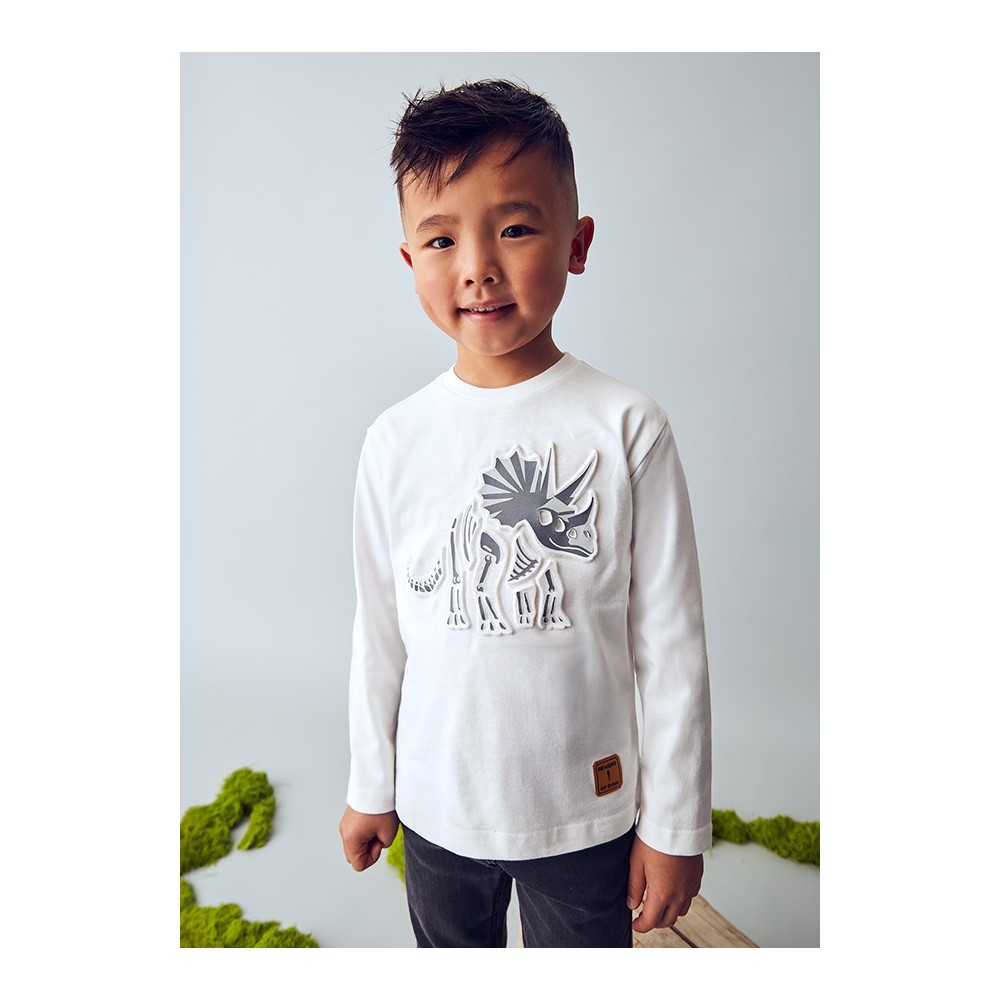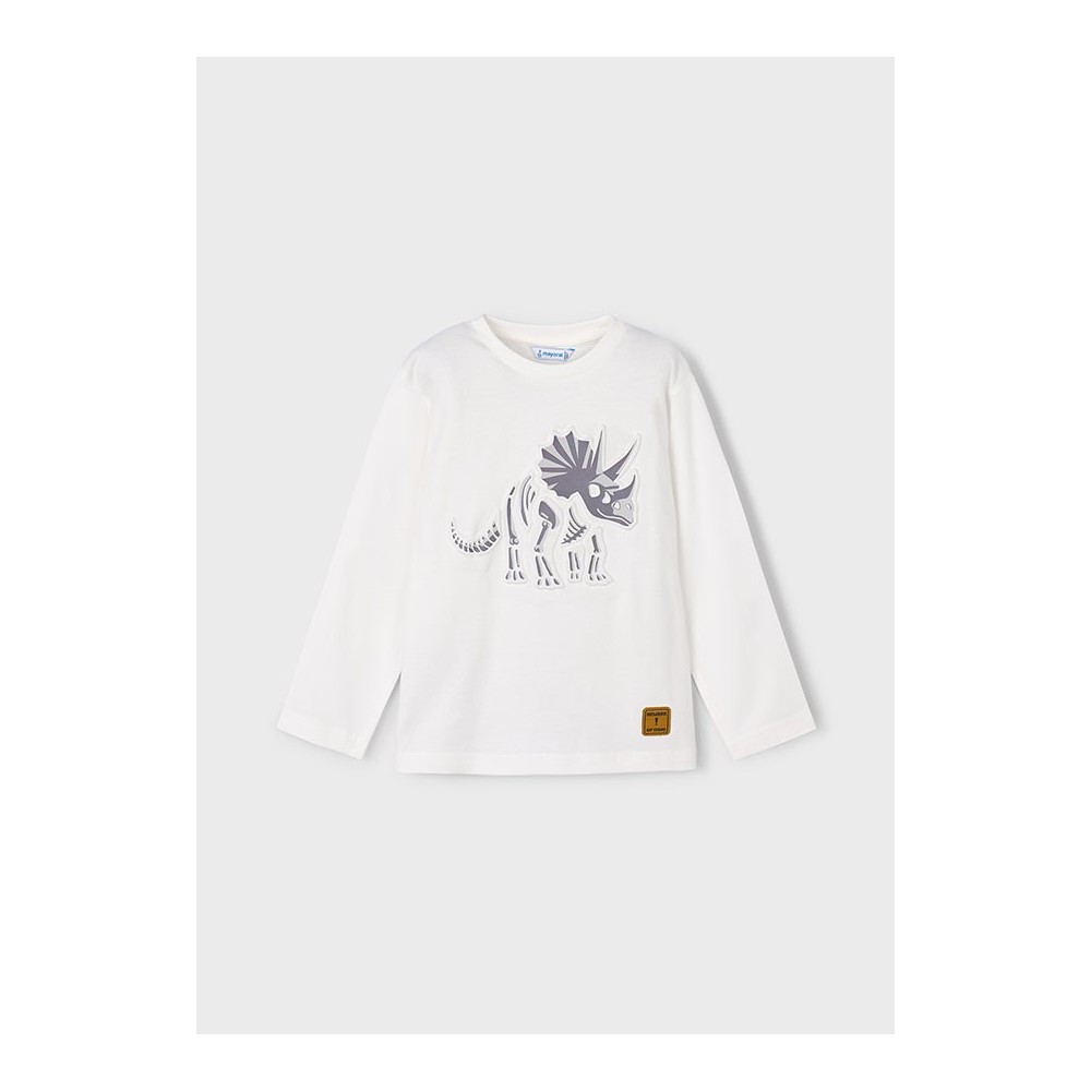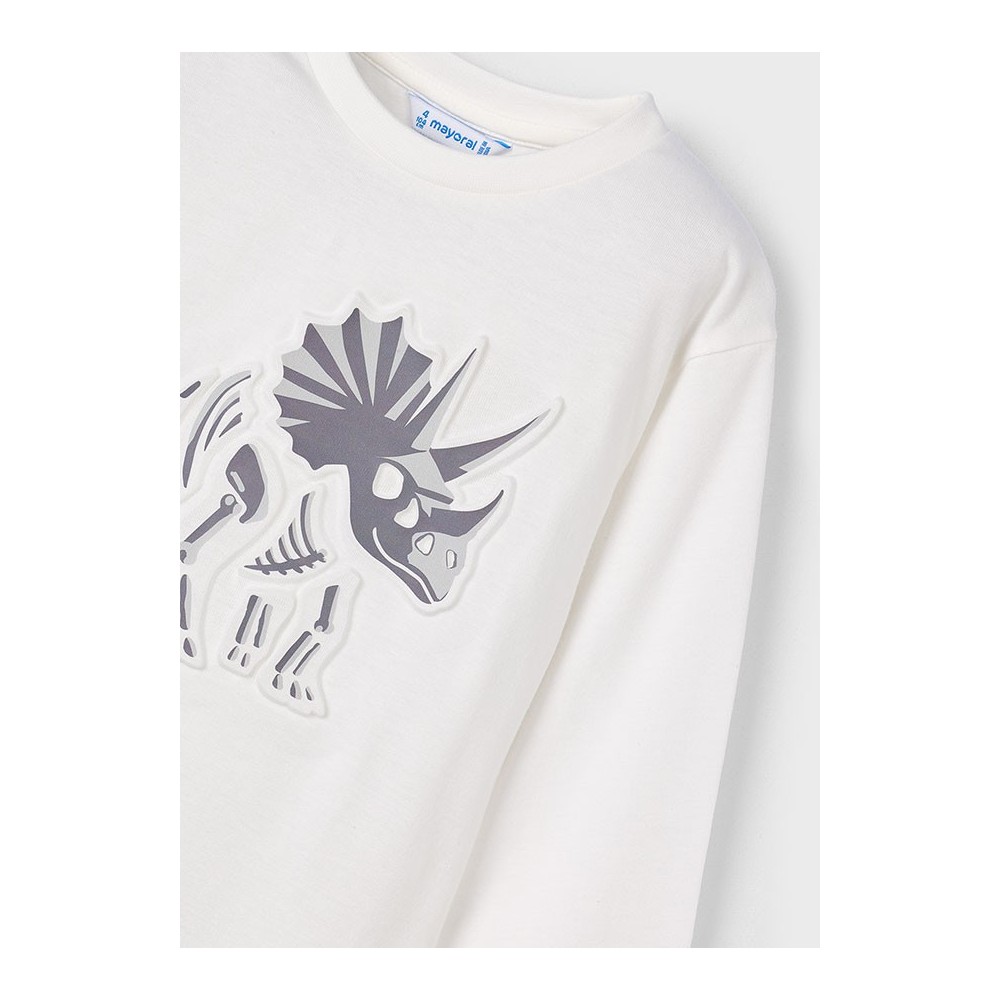 Esta camiseta es perfecta para combinar con pantalones vaqueros, faldas o leggings, creando looks versátiles y modernos para cualquier ocasión. Ya sea para ir al colegio, jugar en el parque o salir a pasear, la camiseta de manga larga embossed nata de Mayoral será la elección perfecta.