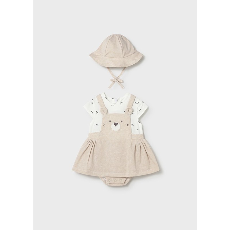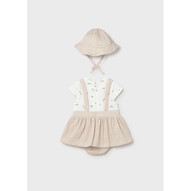 Este adorable pelele falda trigo de la marca Mayoral es perfecto para vestir a tu pequeña con estilo y comodidad. Confeccionado en suave algodón, este pelele es ideal para el día a día o para ocasiones especiales.