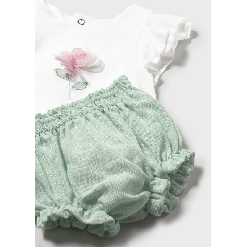 No te pierdas la oportunidad de añadir este conjunto de pantalón corto en color aqua de MAYORAL a la colección de moda infantil de tu hija. ¡Seguro que se convertirá en uno de sus conjuntos favoritos!