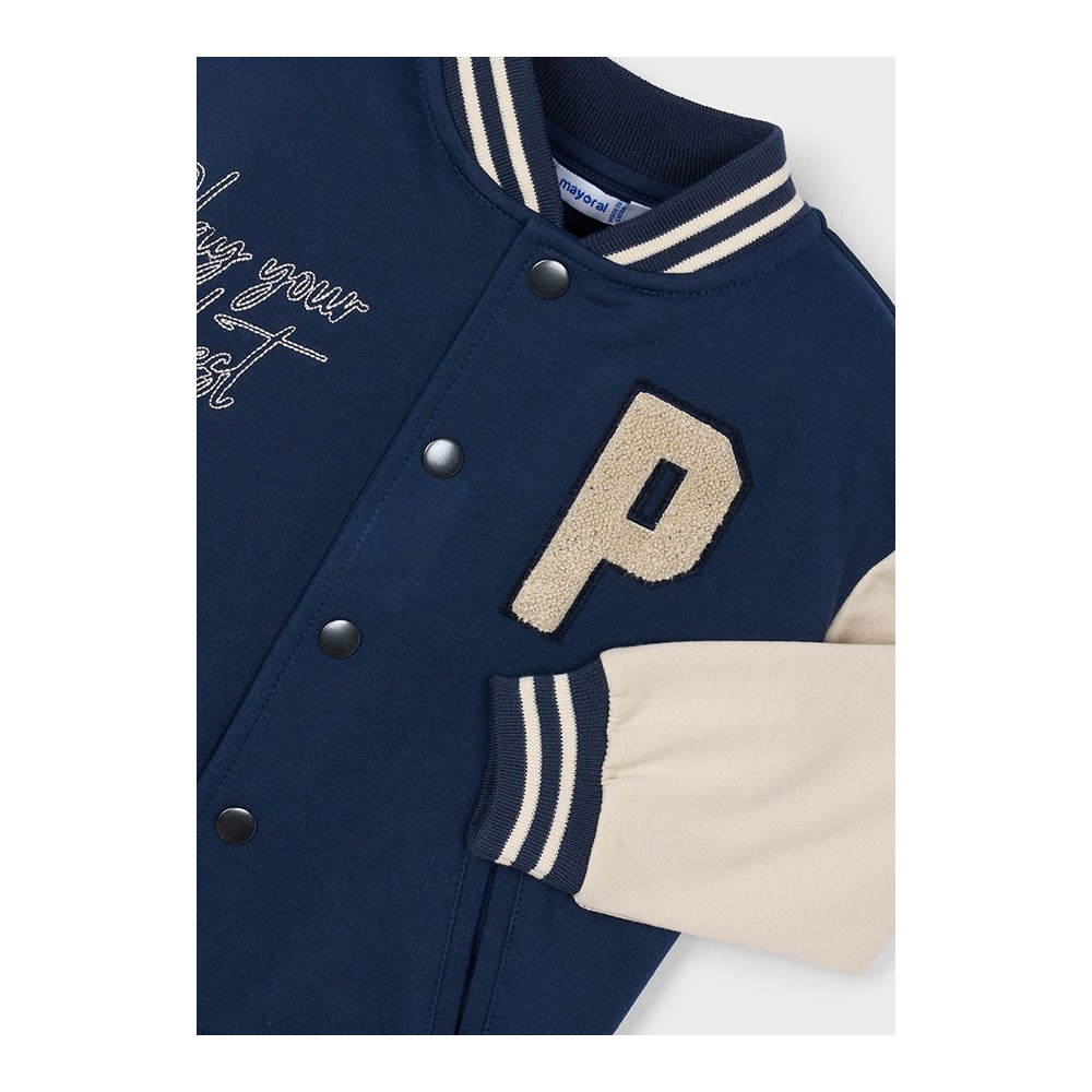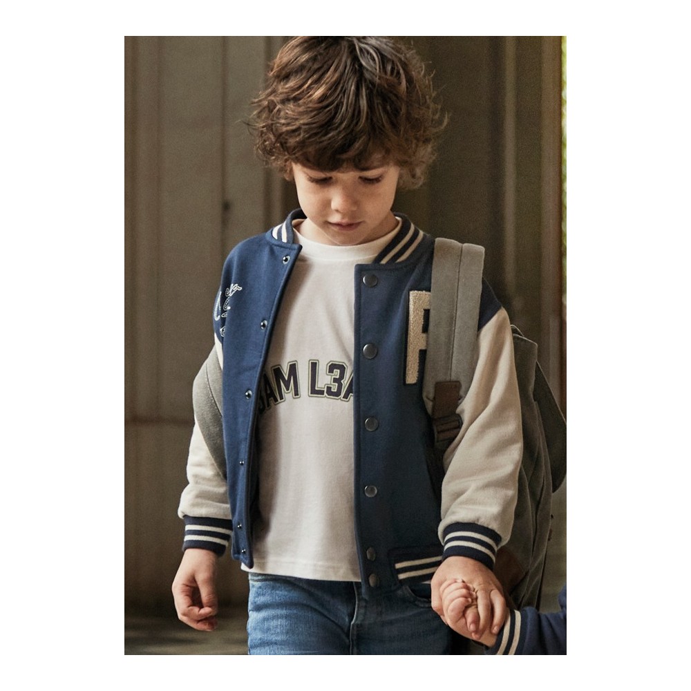¡Haz que tu pequeño luzca a la moda con esta chaqueta bomber varsity azul de Mayoral! Ideal para combinar con jeans, camisetas o sudaderas, esta prenda se convertirá en un básico imprescindible en su armario.
