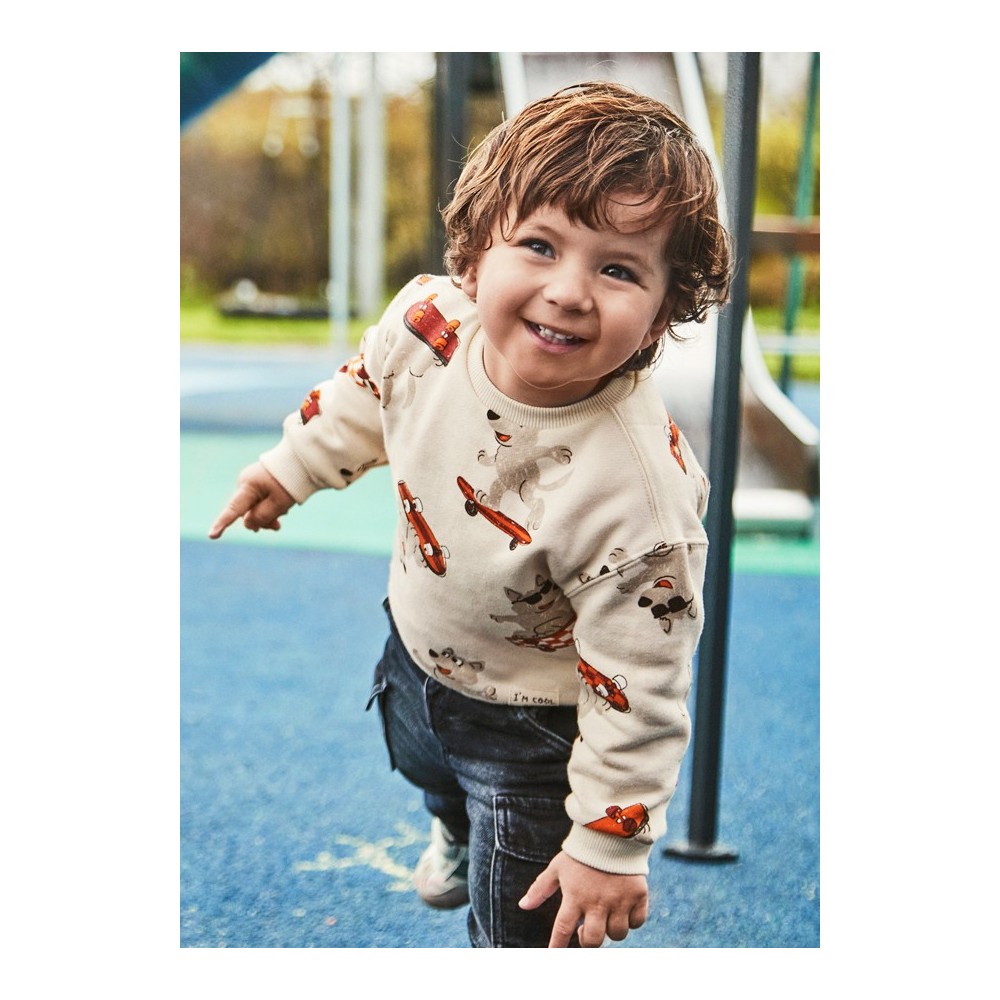 El diseño del pulóver presenta un estampado de setas que le da un toque divertido y original. Perfecto para los más pequeños que disfrutan de prendas coloridas y llamativas. El cuello redondo y los puños elásticos aseguran un ajuste cómodo y seguro.