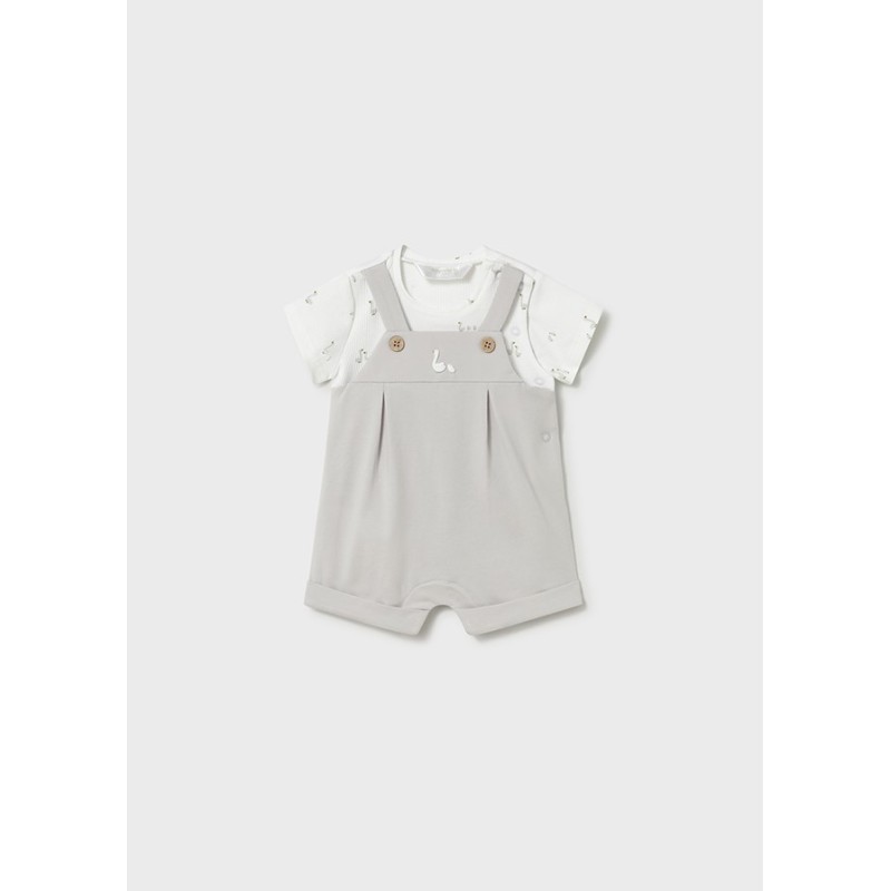 No pierdas la oportunidad de vestir a tu bebé con este encantador pelele peto plata de Mayoral. ¡Hazlo lucir adorable y a la moda!