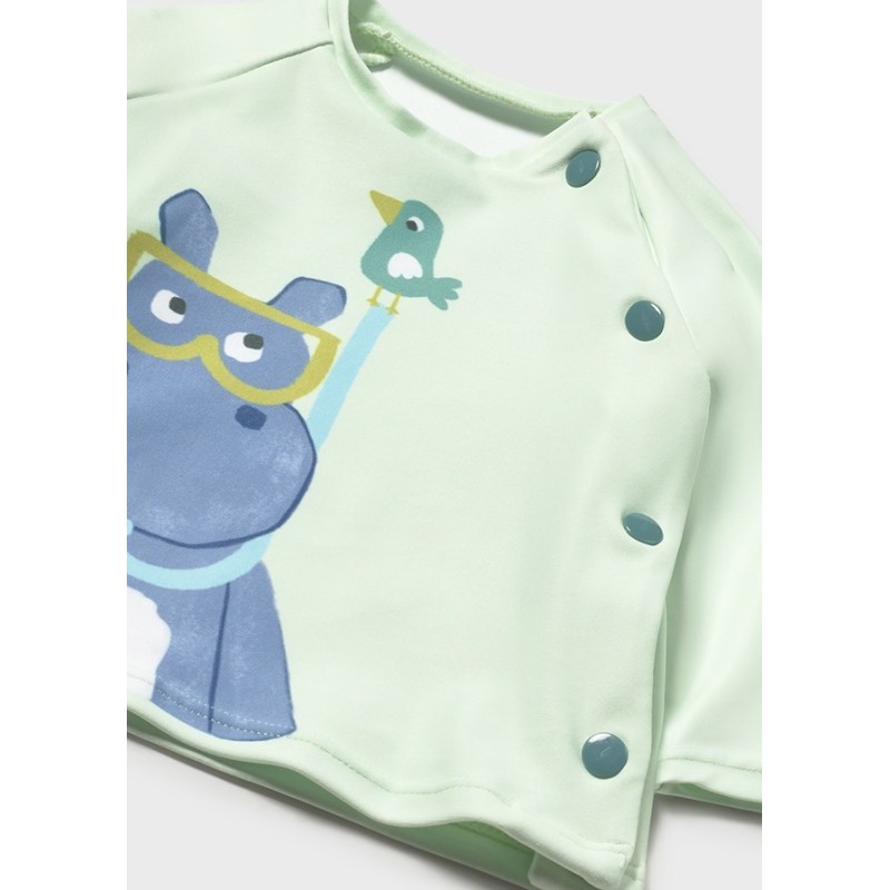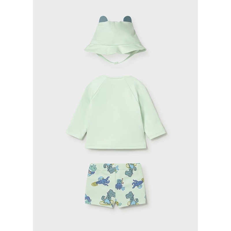 El Conjunto Baño Manzana de la reconocida marca Mayoral es perfecto para que tu pequeño luzca con estilo y comodidad en la playa o la piscina. Este conjunto incluye una camiseta de manga corta y un bañador a juego, ambos con un diseño divertido y colorido.
