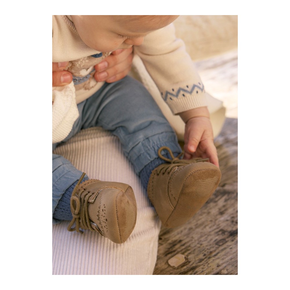No esperes más para darle a tu bebé niño un calzado cómodo, elegante y de calidad. Con los bluchers beige oscuro de Mayoral, podrás completar sus outfits con un toque especial y distinguido.
