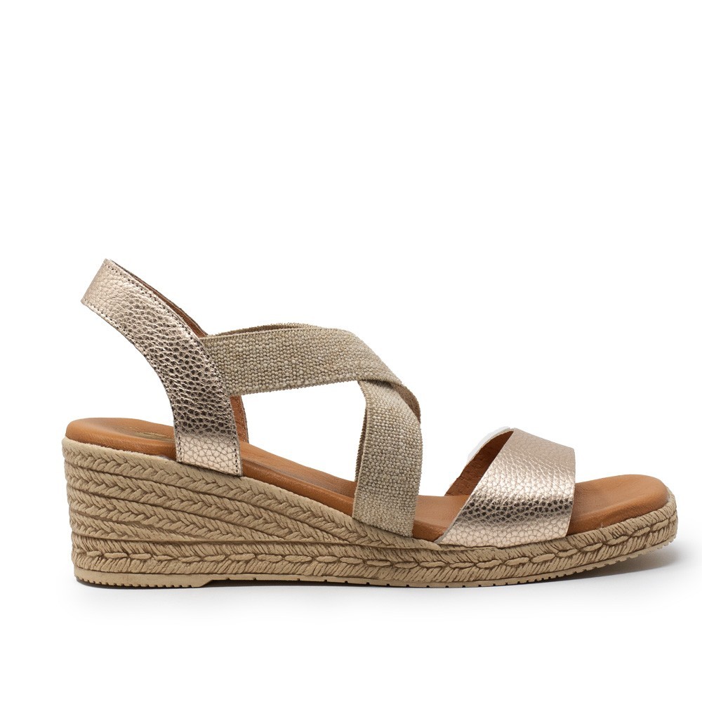 Destaca tu estilo personal con estas sandalias versátiles que se adaptan a cualquier ocasión. El color platino es fácil de combinar con diferentes tonos y estilos, lo que las convierte en un básico imprescindible para esta temporada.