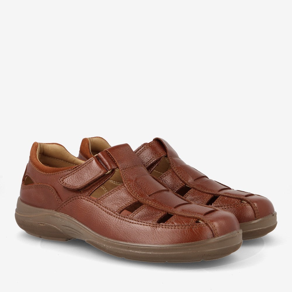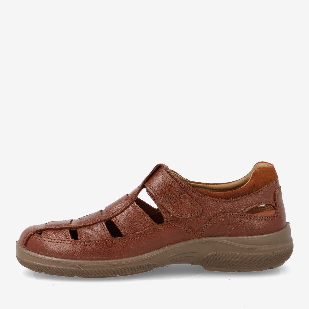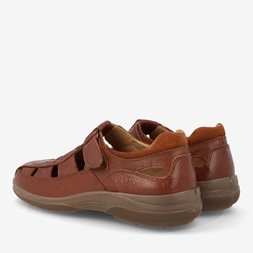 Las sandalias cerradas de piel napa en color coñac de la marca Luisetti son el calzado perfecto para los hombres que buscan comodidad y estilo en un solo producto. Estas sandalias están diseñadas con materiales de alta calidad y una atención meticulosa a los detalles, lo que las convierte en una opción ideal para el día a día.