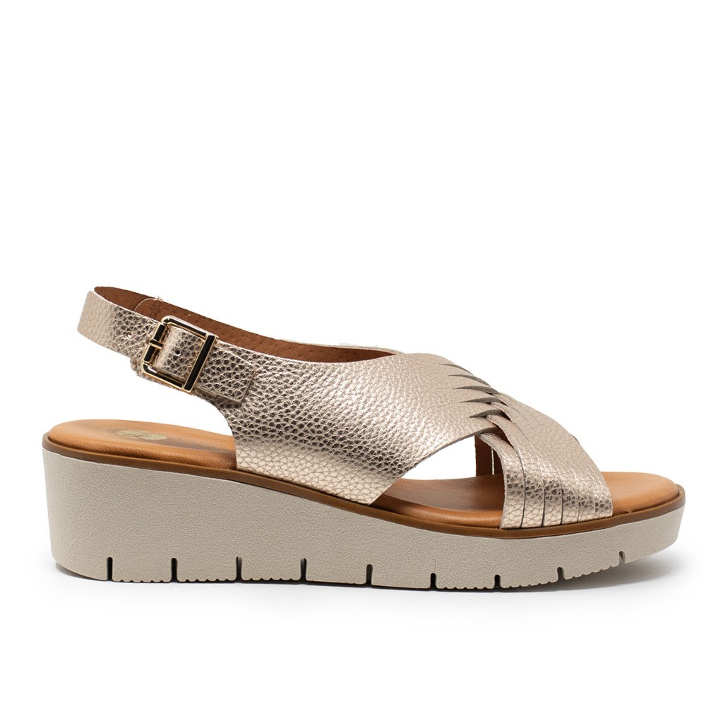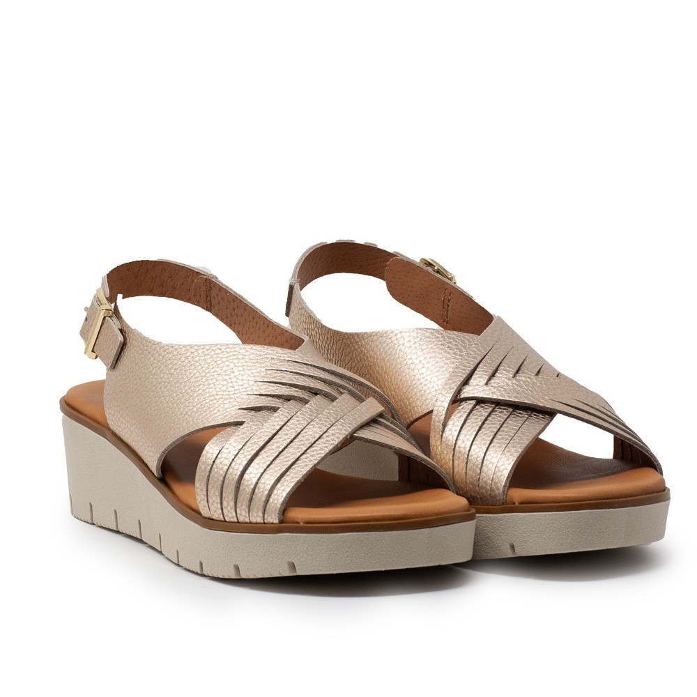 No renuncies al estilo ni a la comodidad este verano. Con las sandalias cuña cruzada platino de Tina Kiz, podrás disfrutar de ambas cosas en un solo calzado. ¡Hazte con ellas y deslumbra allá donde vayas!