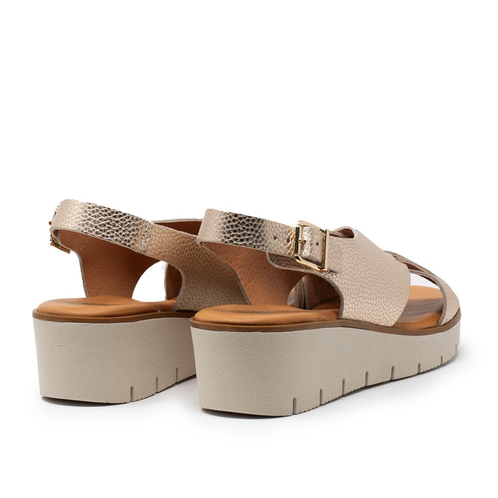 Las sandalias cuña cruzada platino de la marca Tina Kiz son el calzado perfecto para lucir elegante y cómoda durante el verano. Con un diseño moderno y sofisticado, estas sandalias te permitirán destacar en cualquier ocasión.