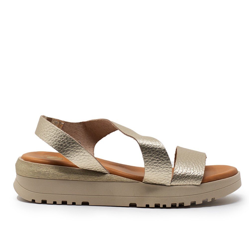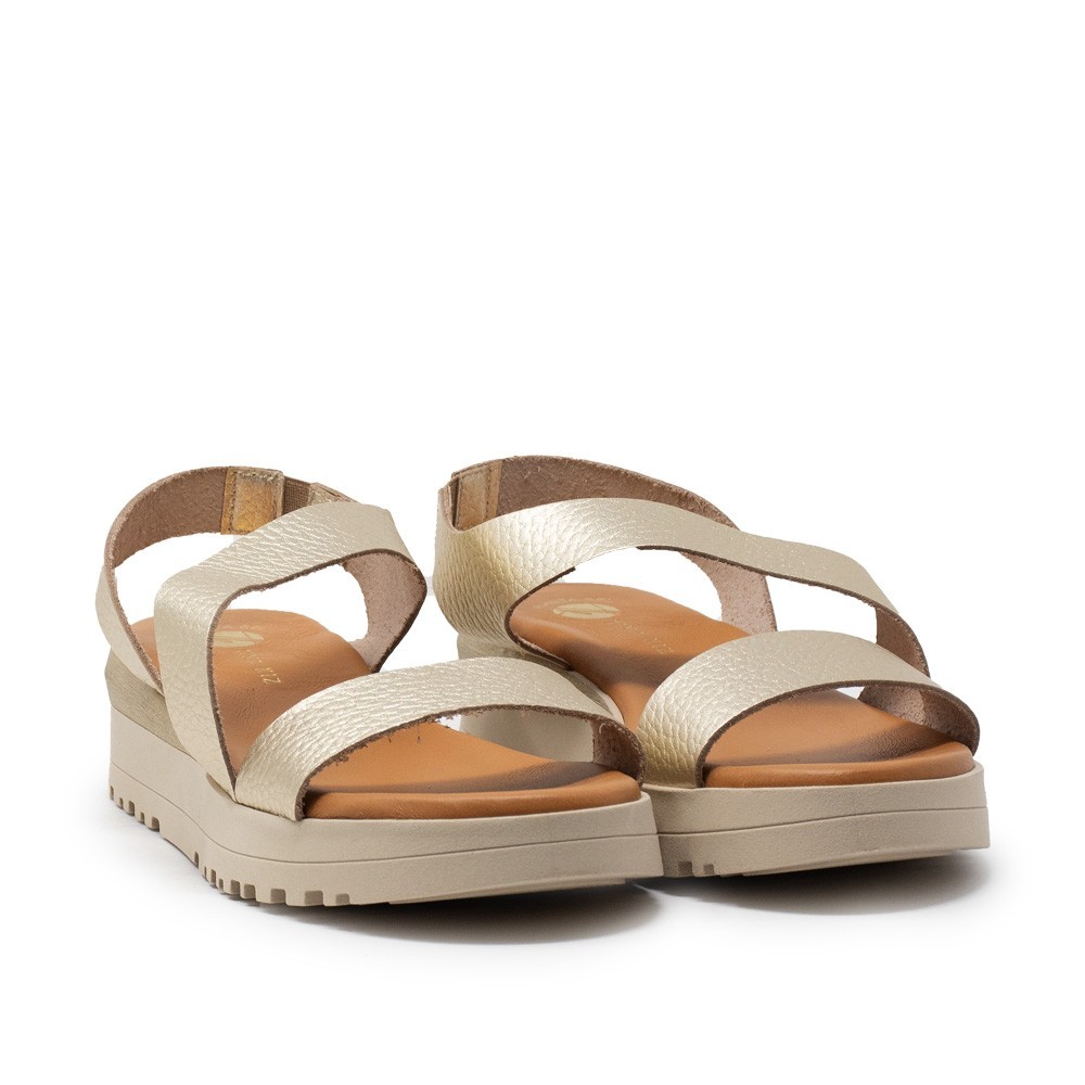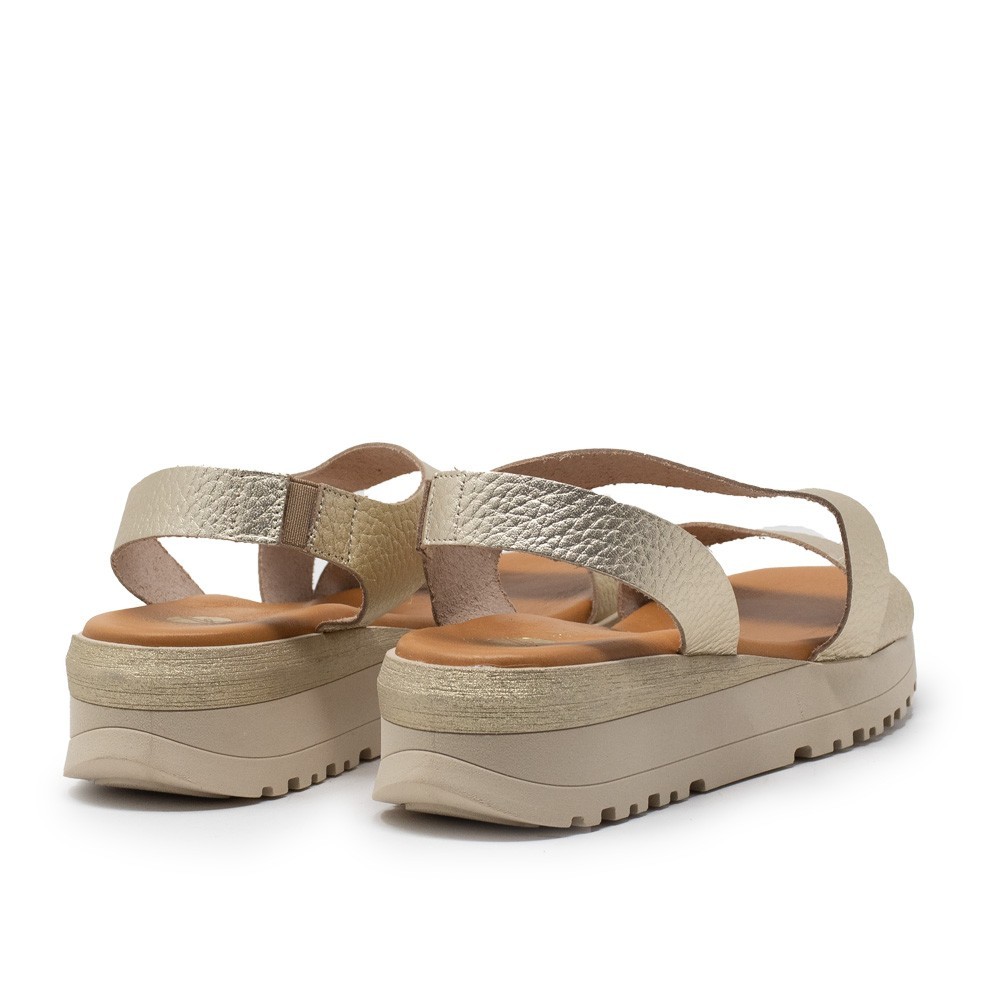 Confeccionadas con materiales de alta calidad, estas sandalias destacan por su diseño moderno y versátil. La tira cruzada en el empeine le da un toque sofisticado y femenino, mientras que el color platino aporta un brillo sutil que las hace ideales para cualquier ocasión.