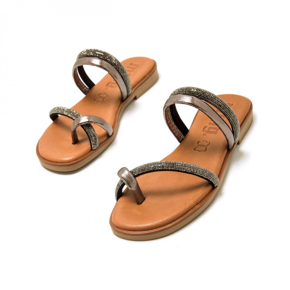 Estas sandalias están fabricadas con materiales de alta calidad que garantizan durabilidad y comodidad. La suela plana y flexible proporciona una pisada suave y confortable, ideal para caminar durante horas sin cansancio. El diseño tubular en la parte del dedo le da un toque original y elegante a este calzado.