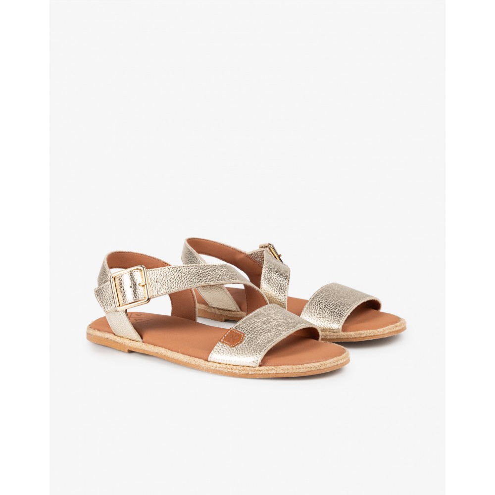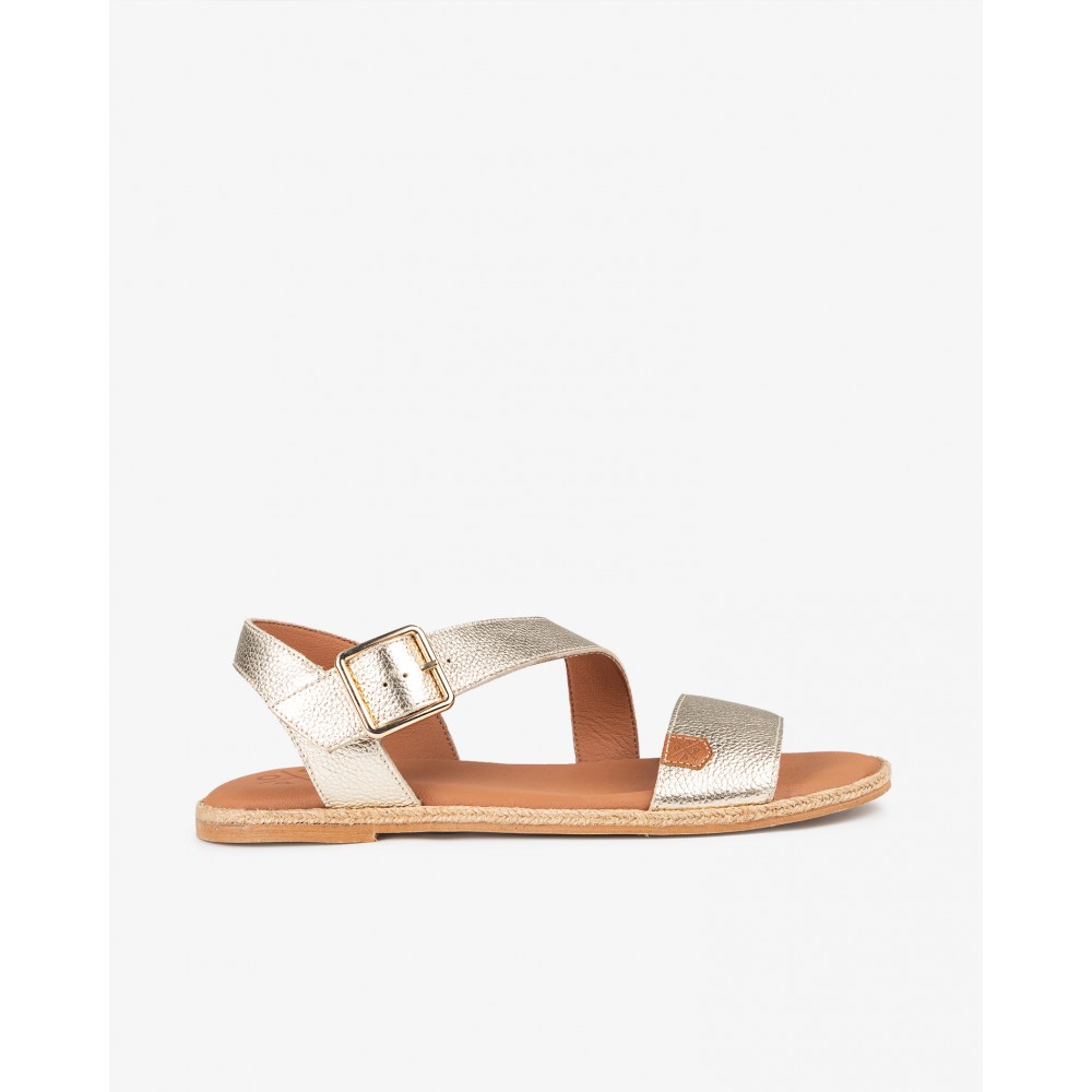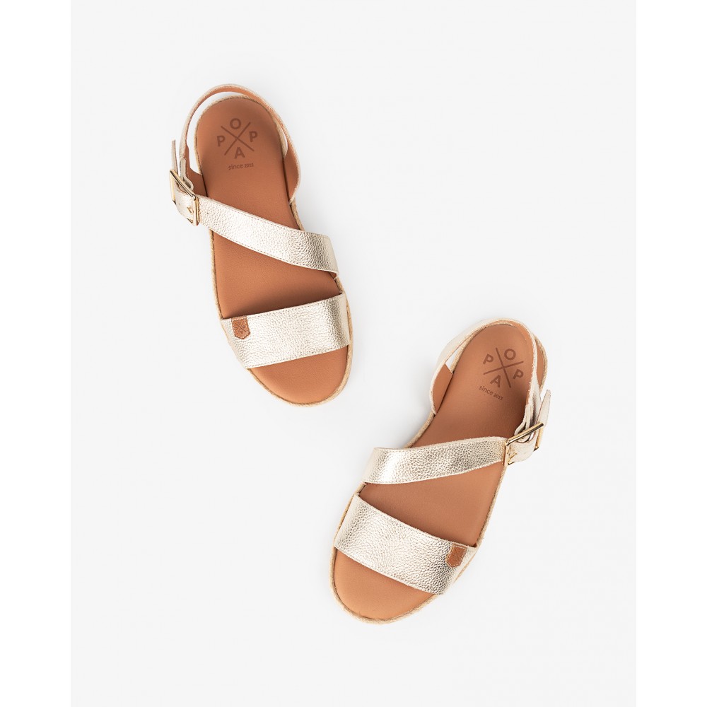 ¡Brilla con estilo este verano con las sandalias laminadas en color oro de la marca POPA! Estas sandalias planas de mujer son el complemento perfecto para tus outfits más veraniegos y sofisticados. Con un diseño elegante y moderno, te garantizan comodidad y estilo a partes iguales.