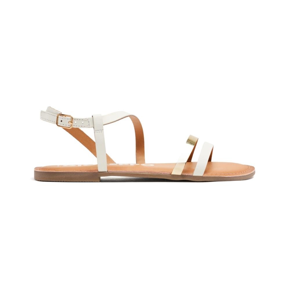 El diseño minimalista de estas sandalias las convierte en un básico imprescindible en tu armario. Las tiras blancas se entrelazan delicadamente sobre el empeine, creando un efecto visual único y sofisticado.