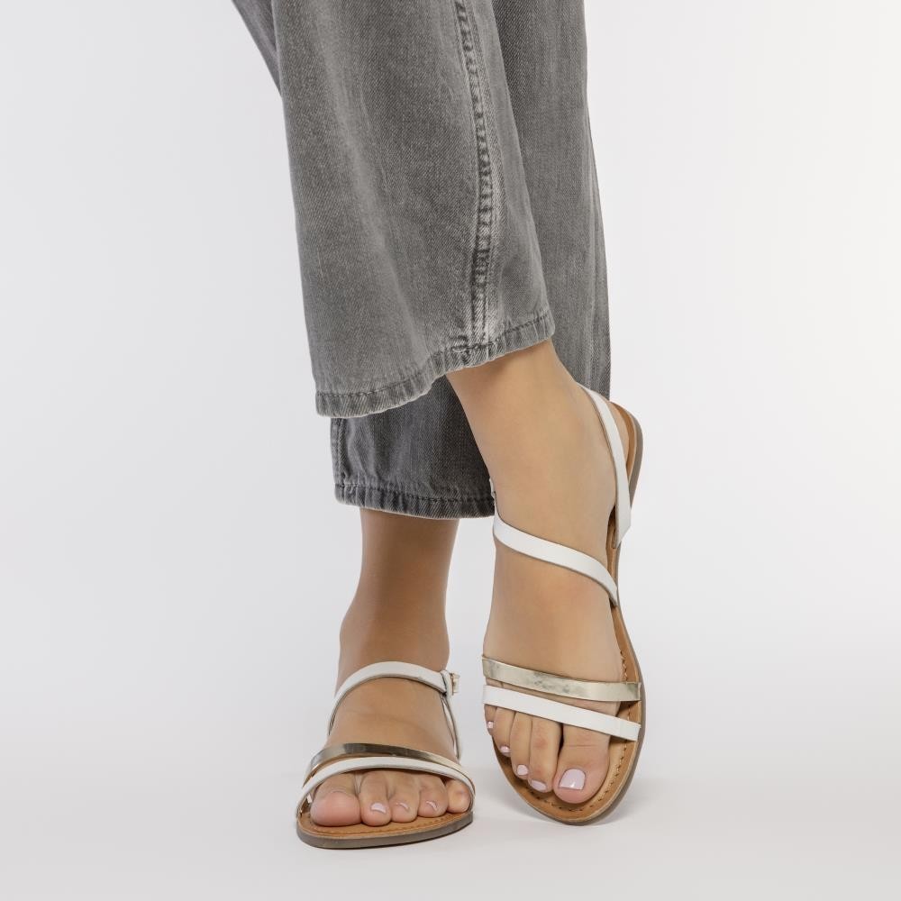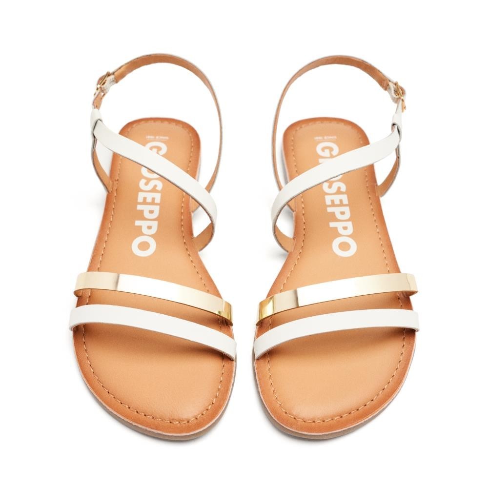 Descubre la elegancia y comodidad con las sandalias de tiras blancas de la marca Gioseppo. Estas sandalias planas son perfectas para lucir un look fresco y moderno en los días más calurosos del verano.