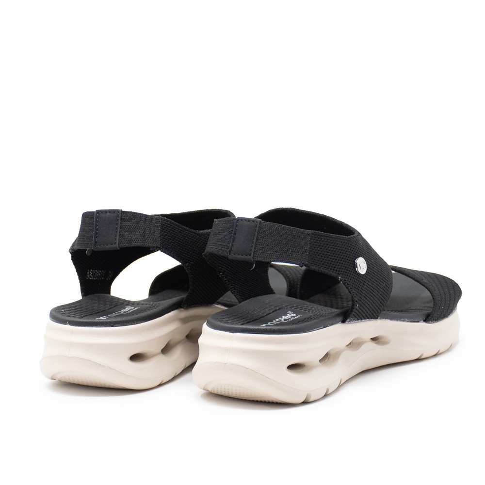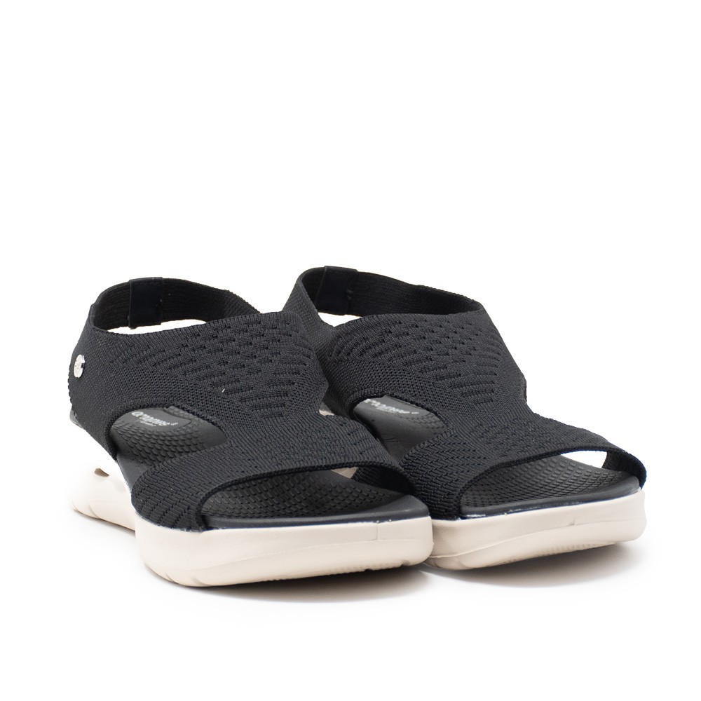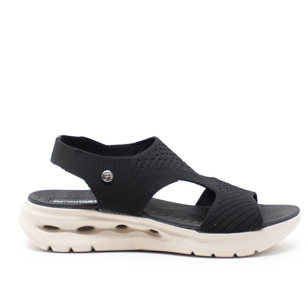 Las sandalias cuentan con una cuña de altura media que te brindará un poco de elevación sin sacrificar la comodidad. La parte superior está fabricada en textil negro, lo que le da un toque elegante y versátil que combinará fácilmente con tus outfits diarios.