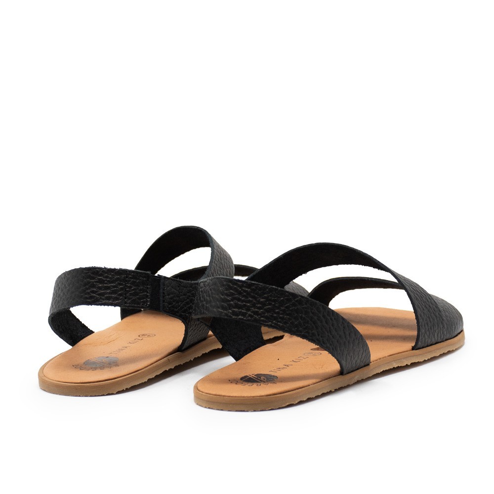 El color negro clásico de estas sandalias las hace versátiles y fáciles de combinar con cualquier outfit, ya sea casual o más elegante. Su estilo minimalista y atemporal las convierte en un básico imprescindible en tu armario de verano.