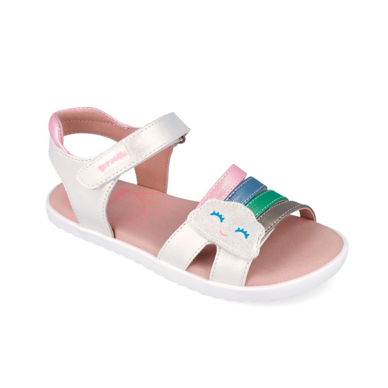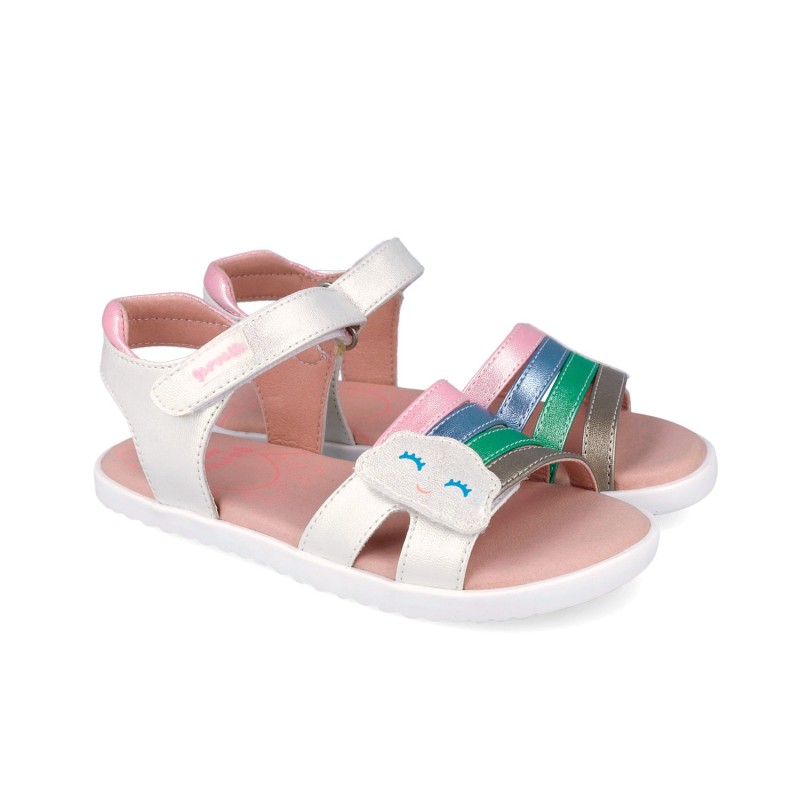 Las sandalias Barefoot Nube Blanco y Plata de la marca Garvalin son el calzado perfecto para las niñas que buscan comodidad y estilo. Estas sandalias planas están diseñadas para ofrecer una sensación de libertad y ligereza en cada paso, gracias a su construcción minimalista y flexible.
