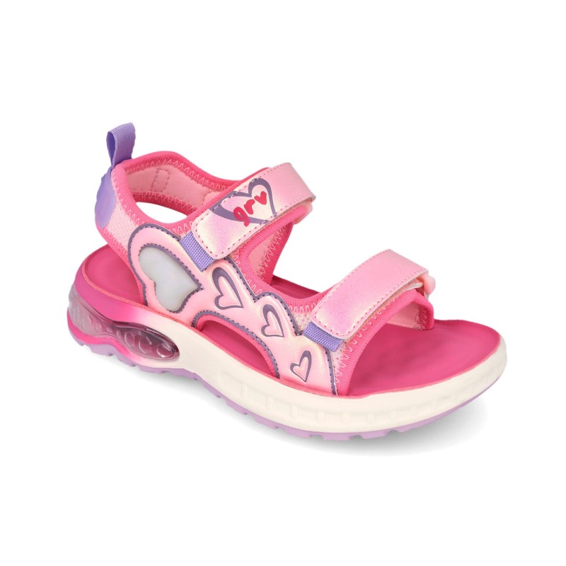 El diseño de las SANDALIAS CORAZONES ROSA destaca por su elegancia y originalidad. Confeccionadas en piel de alta calidad, presentan un color rosa suave que combina fácilmente con diferentes outfits. El detalle de corazones en la parte delantera le da un toque romántico y divertido que encantará a las niñas.