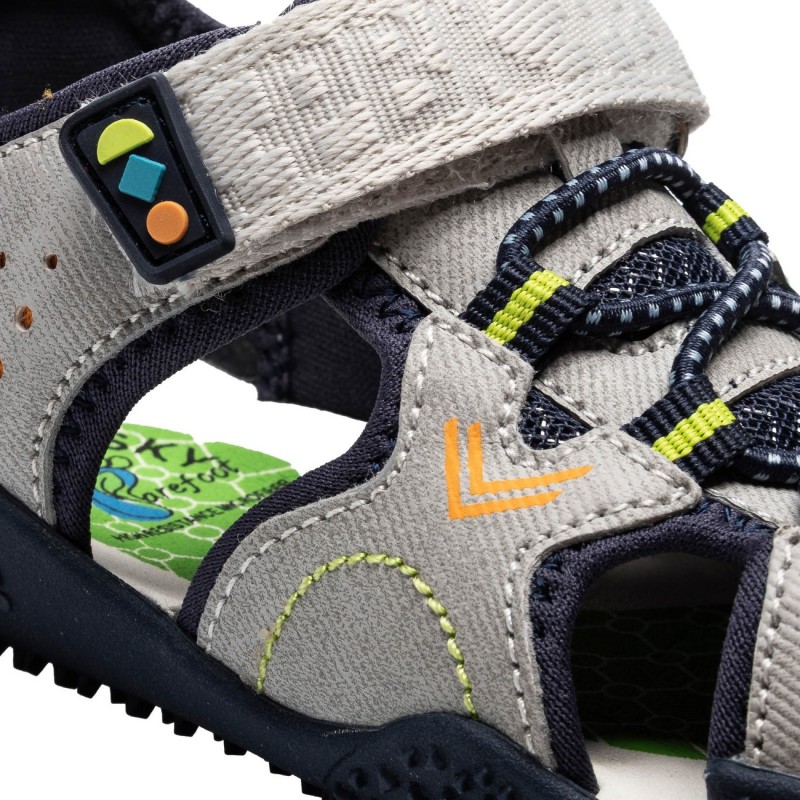 Con un diseño moderno en color gris y azul marino, estas sandalias son perfectas para combinar con cualquier outfit casual o deportivo. Fabricadas con materiales de alta calidad, garantizan durabilidad y resistencia a las actividades diarias de los niños.