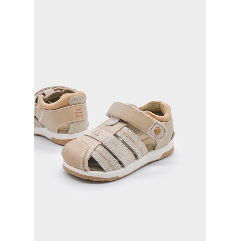 Las cangrejeras clásicas en color arena de la marca Mayoral son el calzado perfecto para los niños durante el verano. Con un diseño cómodo y resistente, estas sandalias planas son ideales para acompañar a los más pequeños en sus aventuras al aire libre.